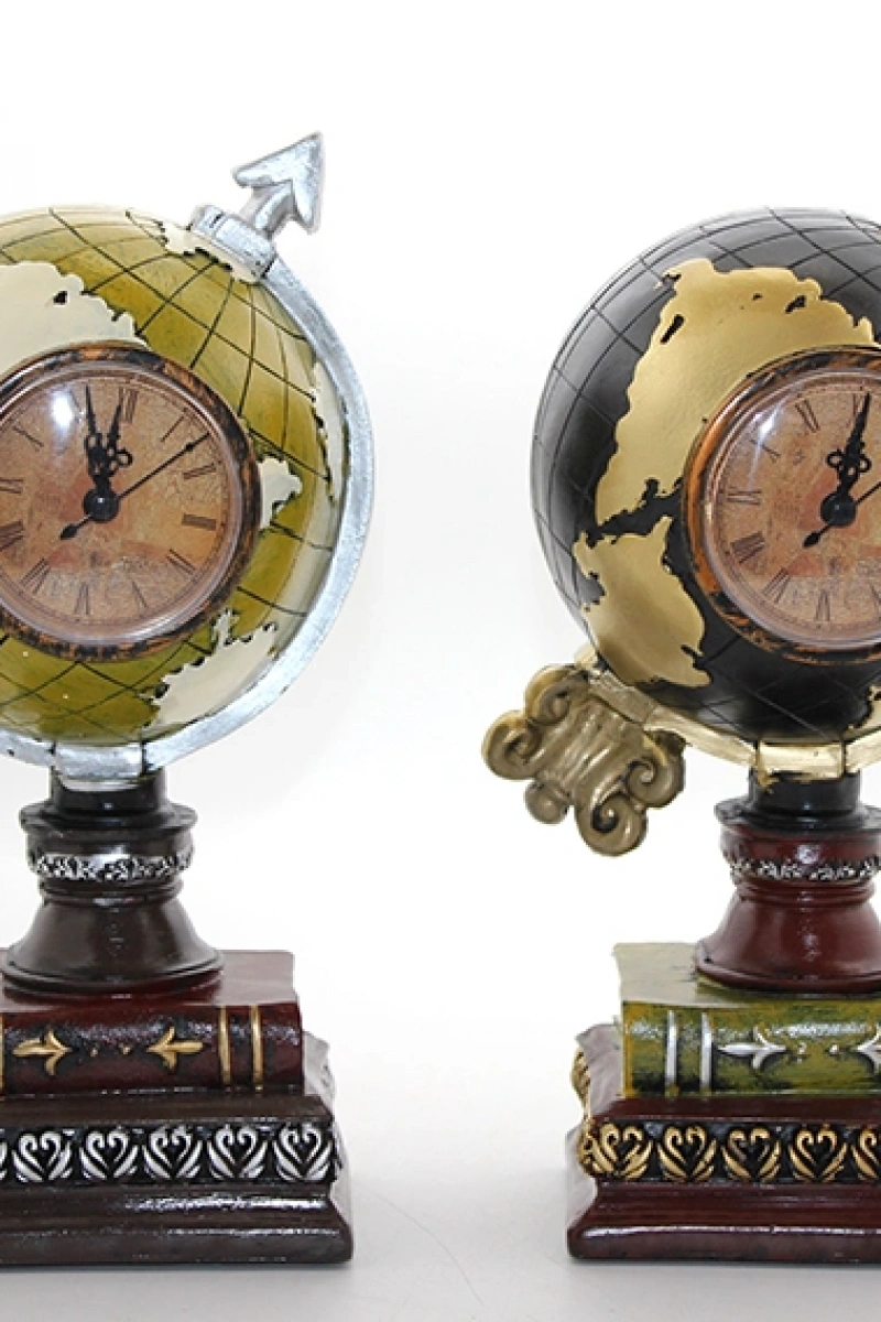 POLYESTER SAATLİ DÜNYA KÜREÜrün ÖzellikleriPolyester Saatli Dünya Küre, klasik dünya küresi tasarımını masa saati fonksiyonuyla birleştiren dekoratif ve işlevsel bir masaüstü aksesuarıdır. Antik eskitme görünümlü detayları, işlemeli kaide yapısı ve üst kısmındaki küre formu ile bulunduğu ortama nostaljik ve prestijli bir hava katar. Ön yüzeyde yer alan analog saat mekanizması sayesinde hem zamanı takip edebilir hem de dekoratif bir obje olarak kullanabilirsiniz. Polyester malzemeden üretilmiş sağlam gövdesi, detaylı işçilik görünümü sunar ve masa üzerinde dengeli bir duruş sağlar. Ofis masalarında, çalışma alanlarında, kitaplık raflarında ve klasik dekorasyon tarzına sahip mekanlarda dikkat çekici bir tamamlayıcıdır. Hem dekoratif hem fonksiyonel yapısıyla öne çıkan bir saatli masaüstü dünya küresi seçeneğidir. Klasik tasarım sevenler için şık bir dekoratif polyester dünya küre saat alternatifidir. Görselde yer alan iki modelden biri karışık olarak gönderilmektedir.Ürün Teknik ÖzellikleriÖzellikAçıklamaÜrün AdıPolyester Saatli Dünya KüreMalzemePolyesterTasarımAntik Eskitme Görünümlü Küre ve SaatFonksiyonAnalog Saat + Dekoratif KüreModel2 Farklı Model (Karışık Gönderim)Kullanım AlanıEv, Ofis, Çalışma Masası, KitaplıkPaket İçeriği1 Adet Polyester Saatli Dünya Küre