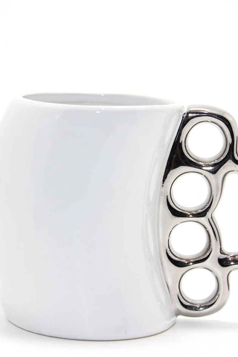 Porselen Muşta Tasarımlı Kupa Bardak Gümüş Renk