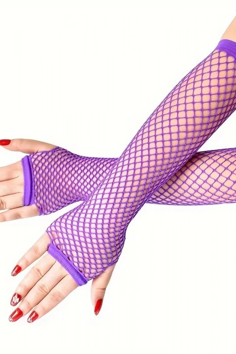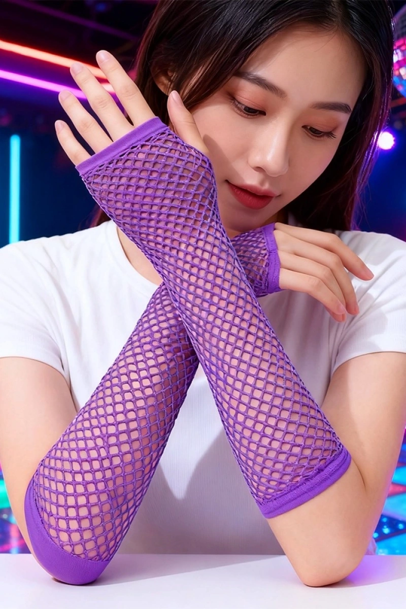 RETRO MOR FİLE PARMAKSIZ ELDİVEN 26 CMÜrün ÖzellikleriRetro mor file parmaksız eldiven, çarpıcı rengi ve klasik file dokusuyla kostüm ve sahne kombinlerine güçlü bir stil dokunuşu kazandırır. 26 cm uzunluğu sayesinde bilekten kola doğru zarif ve dikkat çekici bir görünüm sunarken, parmaksız tasarımı el ve parmak hareketlerini özgür bırakarak dans, sahne performansı ve etkinliklerde konforlu kullanım sağlar. Esnek ve hafif file yapısı farklı kol ölçülerine kolayca uyum gösterir ve uzun süreli kullanımlarda rahatsızlık vermez. Canlı mor tonu, ışık altında öne çıkarak fotoğraf çekimlerinde ve sahnede etkileyici bir görsel oluşturur. Özellikle 80’ler ve 90’lar temalı partiler, kostüm etkinlikleri, konserler, kulüp geceleri ve konsept fotoğraf çekimleri için kombinleri tamamlayan iddialı bir aksesuardır. Retro ruhu modern bir görünümle birleştiren bu eldiven, tarzını cesur ve enerjik şekilde yansıtmak isteyenler için ideal bir tercihtir.Paket İçeriği1 adet Retro Mor File Parmaksız Eldiven 26 cm
