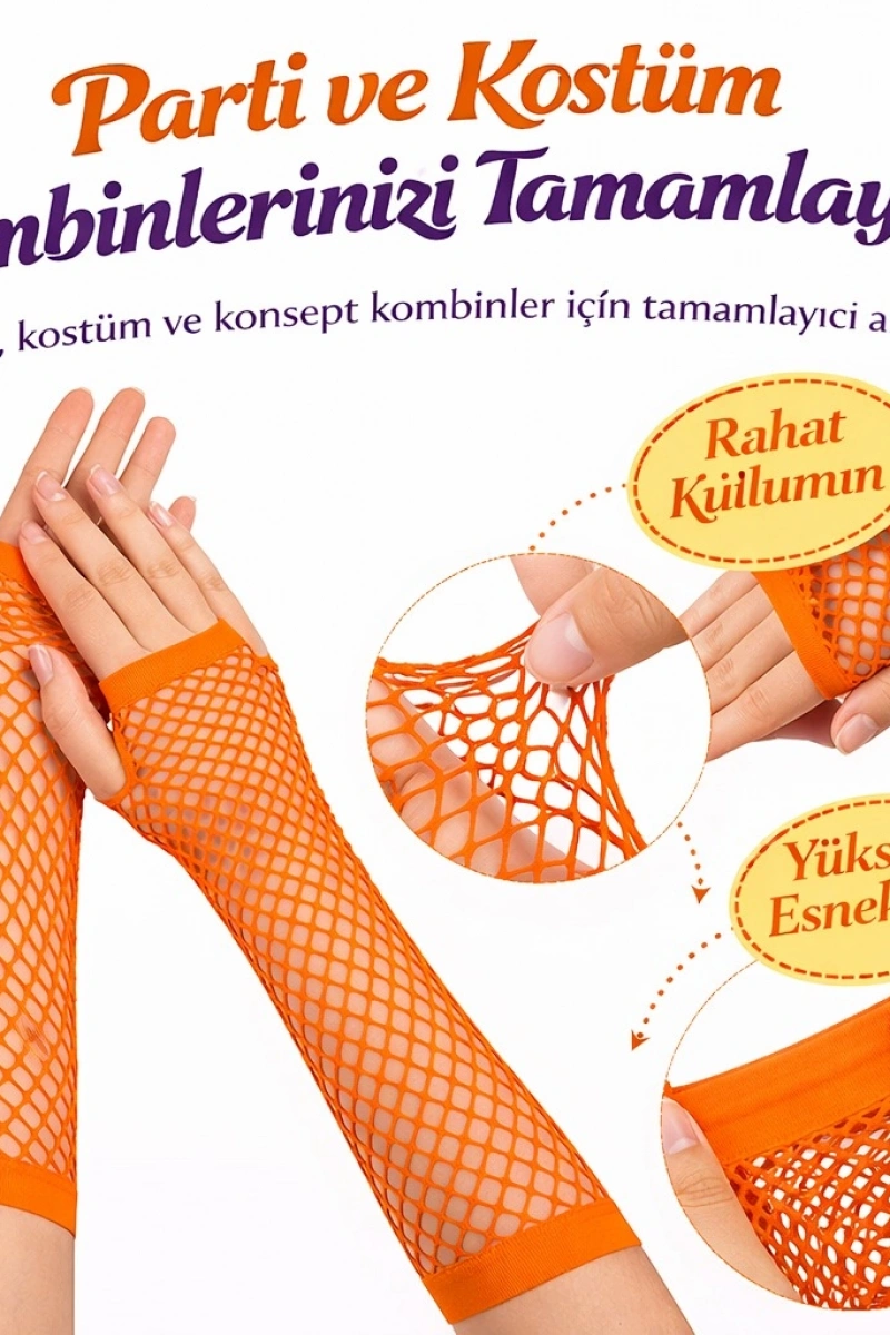 RETRO TURUNCU FİLE PARMAKSIZ ELDİVEN 26 CMÜrün ÖzellikleriRetro turuncu file parmaksız eldiven, enerjik rengi ve ikonik file dokusuyla kostüm ve sahne kombinlerine güçlü bir vurgu katar.26 cm uzunluğu sayesinde bilekten kola doğru şık bir siluet oluşturur; parmaksız tasarımı ise hareket özgürlüğünü koruyarak dans, sahne performansı ve etkinliklerde rahat kullanım sağlar. Esnek ve hafif yapısı farklı kol ölçülerine kolayca uyum gösterir ve uzun süreli kullanımlarda konfor sunar. Canlı turuncu tonu, ışık altında dikkat çekici bir görünüm yaratarak fotoğraf çekimlerinde ve sahne üzerinde etkileyici bir stil ortaya koyar. 80’ler–90’lar temalı partiler, kostüm etkinlikleri, konserler, dans gösterileri ve konsept fotoğraf çekimleri için kombinleri tamamlayan iddialı bir aksesuardır. Retro ruhu modern bir dokunuşla yansıtan bu eldiven, tarzını cesurca ifade etmek isteyenler için ideal bir tercihtir.Paket İçeriği1 adet Retro Turuncu File Parmaksız Eldiven 26 cm