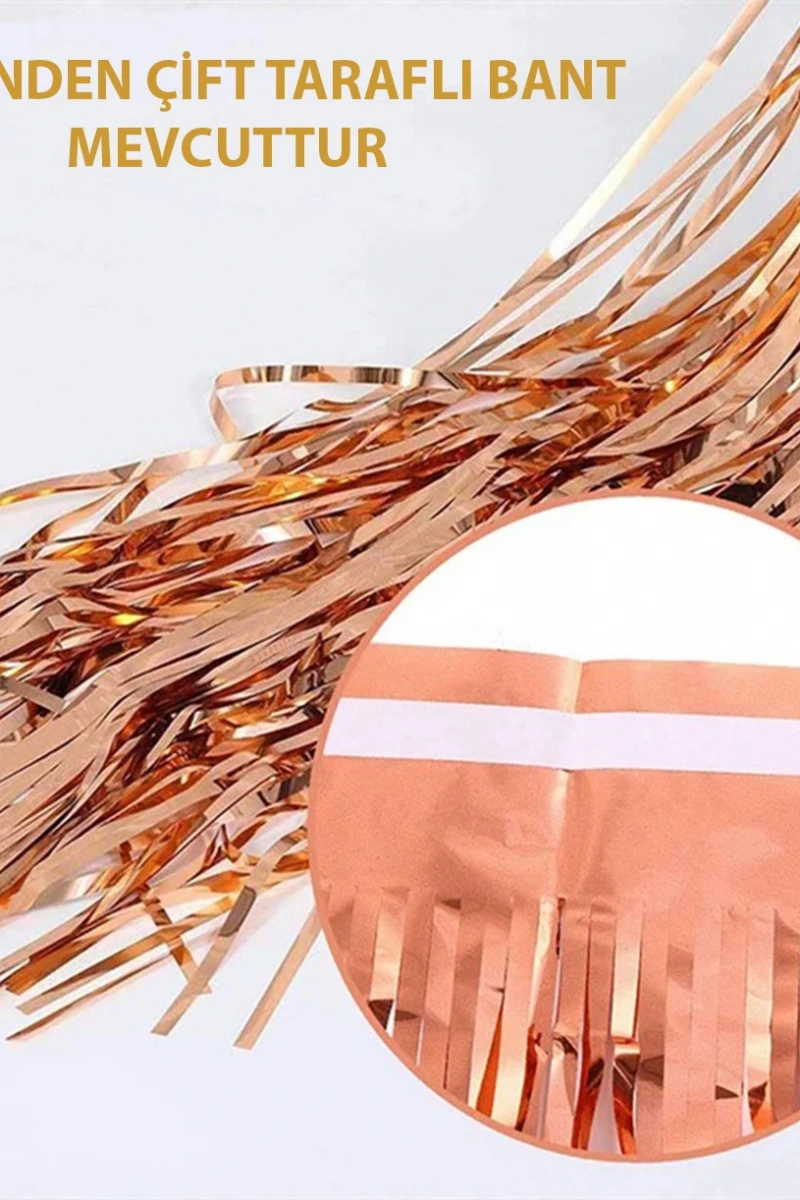 Rose Gold Püsküllü Kapı Perdesi AçıklamaRose Gold Püsküllü Kapı Perdesi, partilerinize zarif ve şık bir dokunuş katan dekoratif süslemedir. Bekarlığa veda, doğum günü ve özel kutlamalarınızda 1x2 metre boyutlarıyla kapılarınızı göz alıcı şekilde süsler.Ürün ÖzellikleriŞık rose gold renkli püsküllerle göz kamaştırıcı tasarım.1 metre genişlik ve 2 metre yükseklik ölçüleriyle çoğu kapıya uyumludur.Kolay ve pratik montaj için dayanıklı, hafif malzemeden üretilmiştir.Parti atmosferinize zariflik ve parlaklık katar.Kolay çıkarılabilir ve tekrar kullanılabilir.Paket İçeriği1 adet Rose Gold Püsküllü Kapı Perdesi (1x2 m)