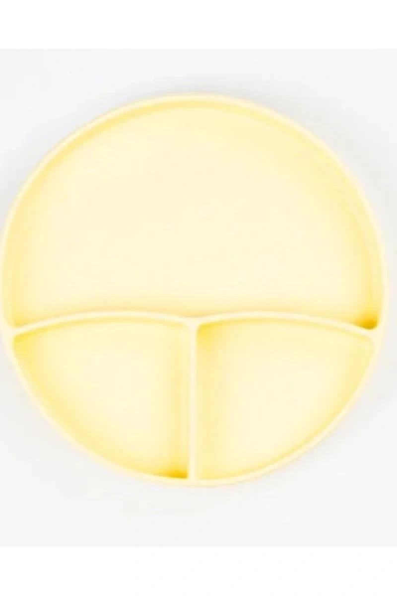 Sarı 3’lü Silikon Yemek Seti – Önlük + Diş Kaşıyıcılı Kaşık + Vakumlu Tabak