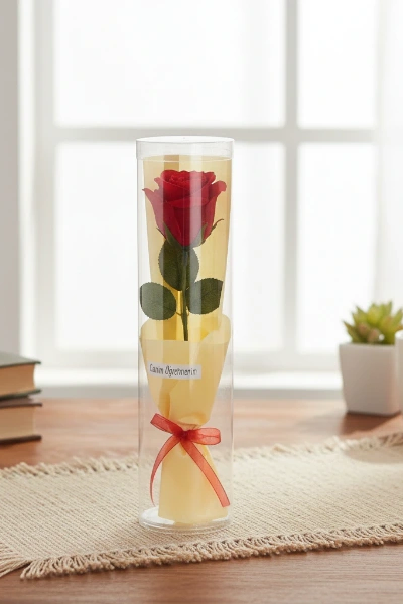 Şeffaf Silindir Kutulu Gül - Öğretmenler Günü Hediyesi