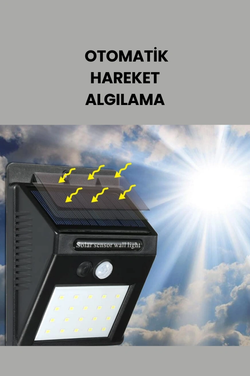 IP65 sertifikalı bu güneş enerjili 20 LED’li lamba, yağmur, kar, rüzgar ve toz gibi dış etkenlere karşı yüksek dayanıklılık gösterir. Bu özelliği sayesinde bahçeler, verandalar, garaj girişleri, çiftlikler ve dış cephelerde rahatlıkla kullanılabilir. PIR hareket sensörü, 3 metreye kadar olan hareketleri algılar ve otomatik olarak ışığı açar. Gündüzleri güneş ışığını toplayan 5.5V 0.55W solar panel, 3.7V 1200mAh bataryayı şarj eder ve gece boyu aydınlatma sağlar. SMD LED teknolojisi sayesinde yüksek parlaklıkta ışık verirken enerji verimliliğini de korur. -5°C ile 60°C arası sıcaklıklarda sorunsuz çalışır. Kurulumu kolaydır; duvara vidalayarak kısa sürede kullanıma hazır hale getirebilirsiniz. Elektrik bağlantısına ihtiyaç duymadan, tamamen güneş enerjisiyle çalışır.