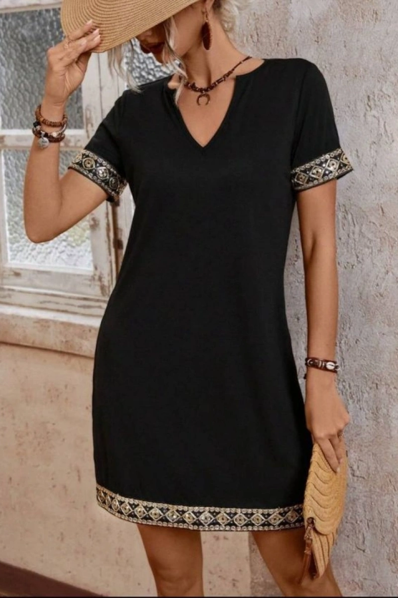 Şerit Detay V Yaka Yandan Cepli Viskon Elbise