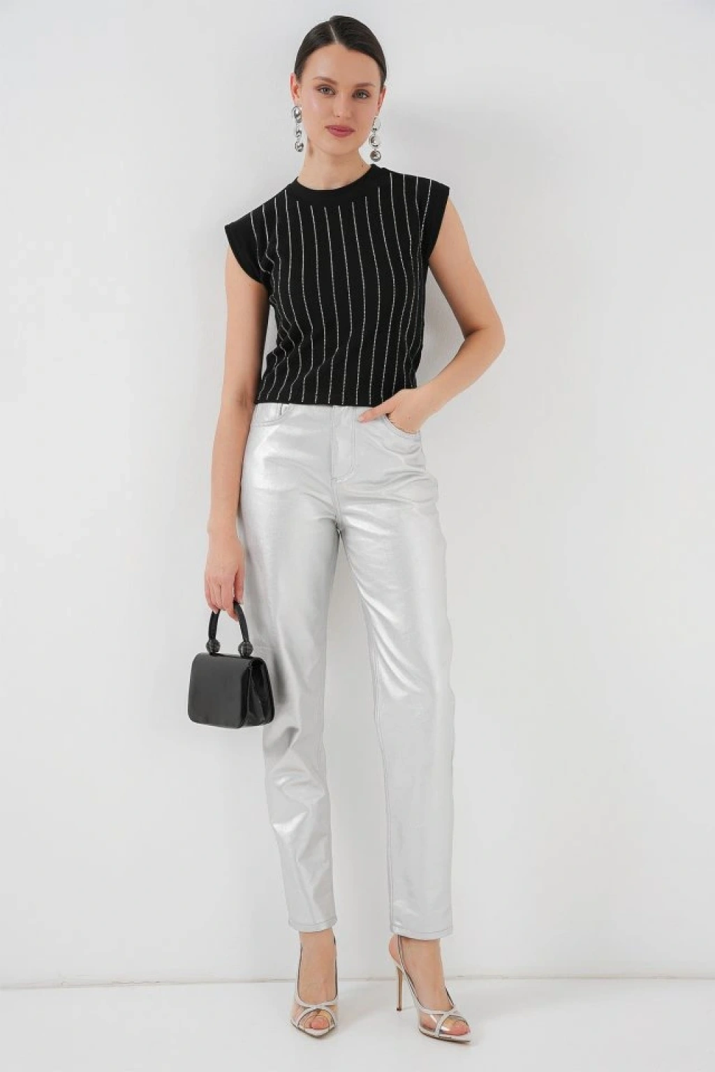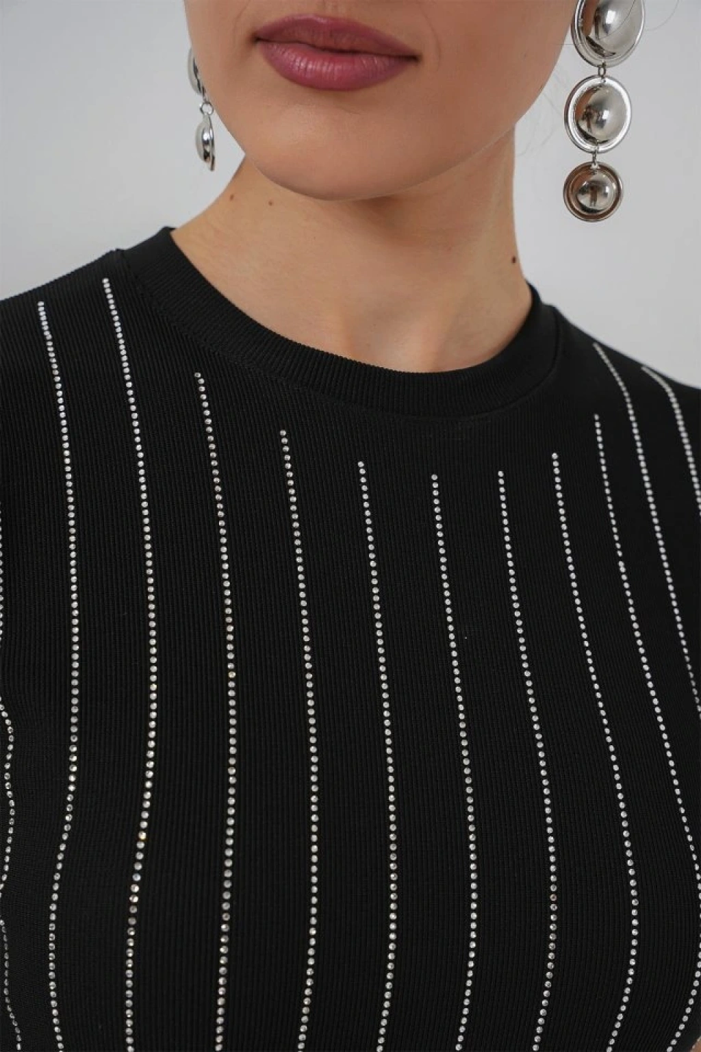 Sıfır Kol Taşlı Bluz 931 - Siyah