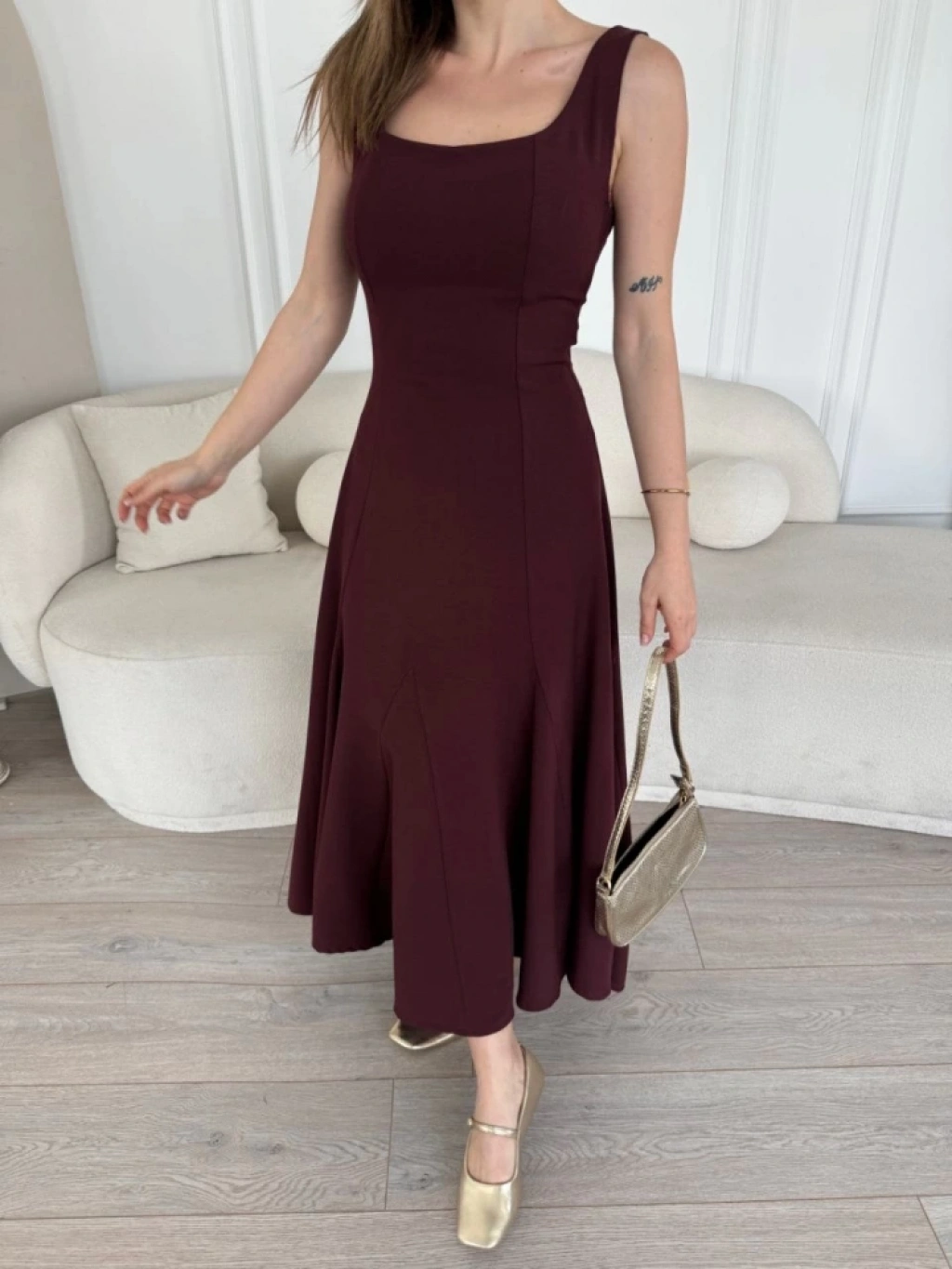Sırt Dekolteli Kolsuz Uzun Elbise - Mürdüm