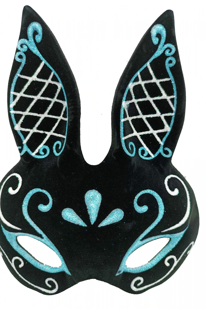 SİYAH MAVİ BEYAZ SIMLI TAVŞAN MASKESİÜrün ÖzellikleriRenk: Siyah, Mavi, BeyazBoyut: 18x16 cmMalzeme: Simli kumaşTasarım: Tavşan şeklinde, göz alıcı simli detaylarlaKullanım: Kostüm partileri, Halloween, balo, doğum günü kutlamalarıEsnek yapısı ile rahat kullanımPaket İçeriği1 adet Siyah Mavi Beyaz Simli Tavşan Maskesi