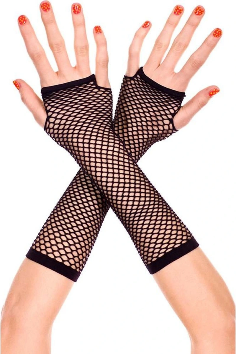 Siyah Renk Uzun File Eldiven - Örgü Eldiven Siyah Renk