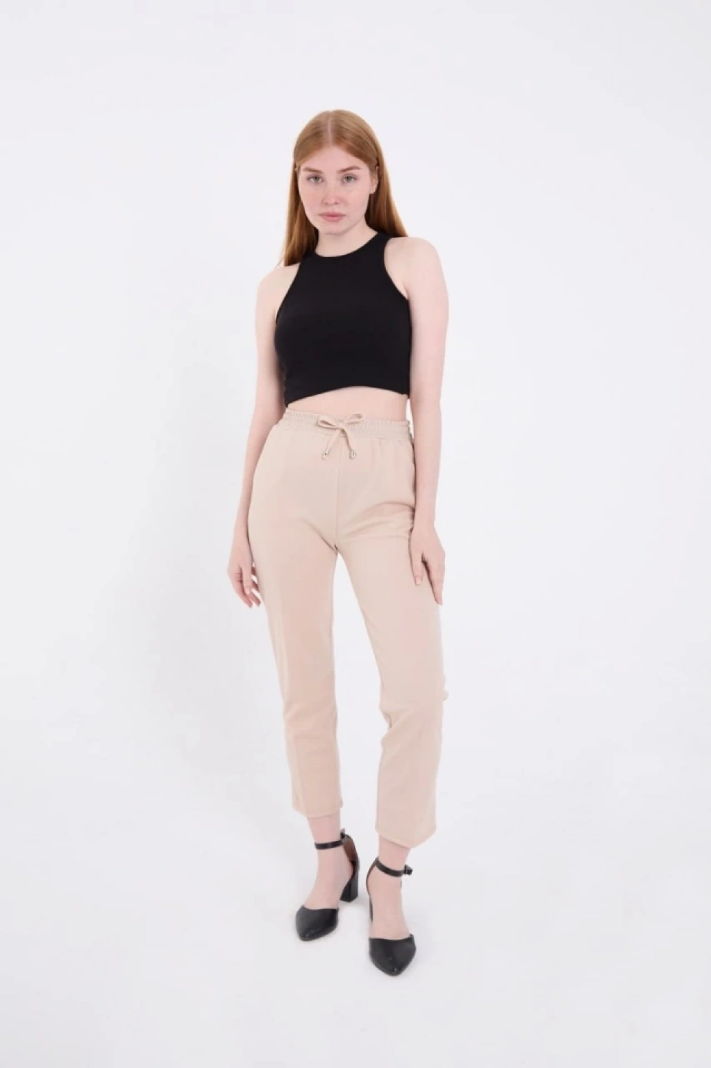 Tam Kalıp Basic Eşofman Pantolon - Bej