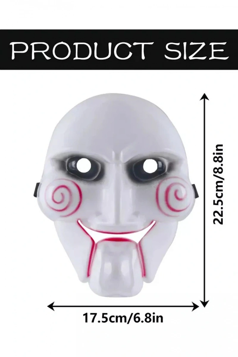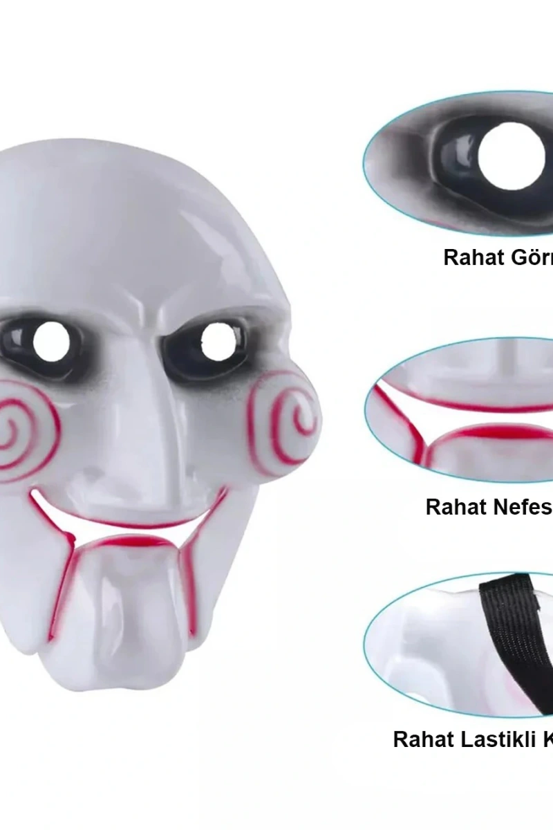 TESTERE SAW MASKESİ – 17.5 x 22.5 CMÜrün ÖzellikleriTestere Saw maskesi, korku ve gerilim temalı kostüm partileri, cadılar bayramı etkinlikleri ve özel konsept kutlamalar için tasarlanmıştır. Dayanıklı plastik malzemeden üretilmiş olup uzun süreli kullanım için uygundur. Yüz hatlarına tam oturan yapısı sayesinde rahat kullanım sağlar. Göz, burun ve ağız bölgesinde bulunan doğal kesimlerle nefes almayı ve görmeyi kolaylaştırır. Ayarlanabilir lastikli kayışı sayesinde farklı yüz ölçülerine uyum sağlar. 17.5 x 22.5 cm boyutlarıyla yetişkinler için ideal ölçüdedir.Paket İçeriği1 adet Testere Saw maskesi