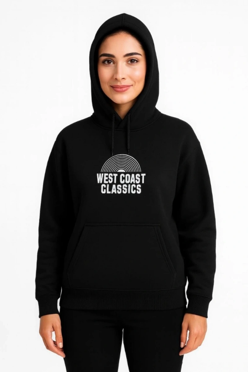 Üç İplik Kapüşonlu Ön Ve Arka Baskılı SweatShirt Hoodie - Siyah