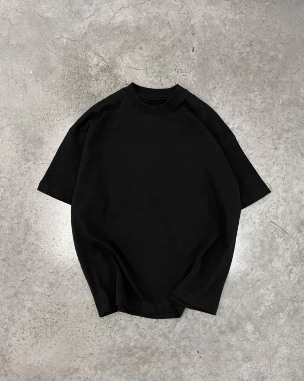 Unisex Basic Bisiklet Yaka Oversize T-Shirt - Siyah