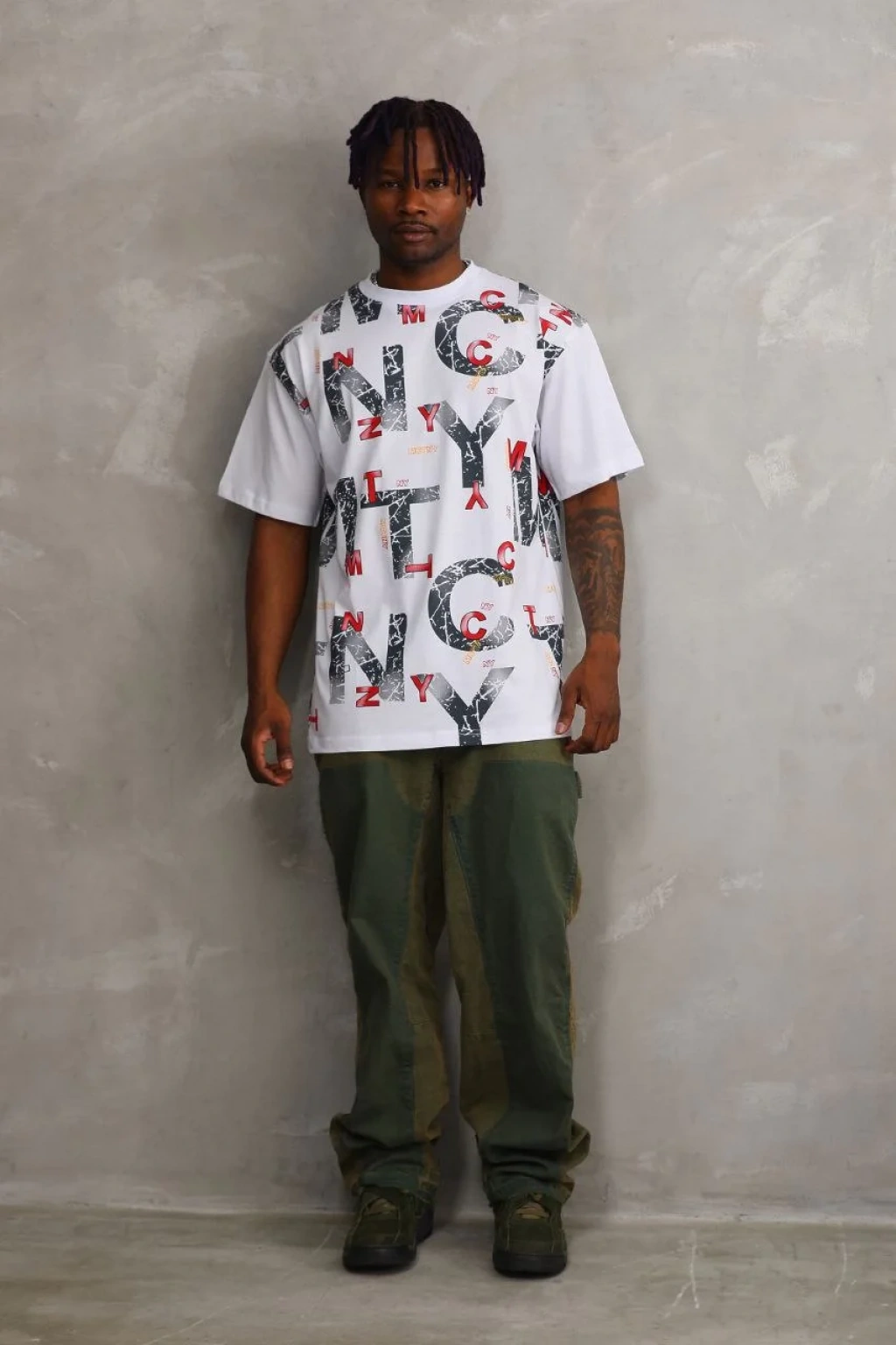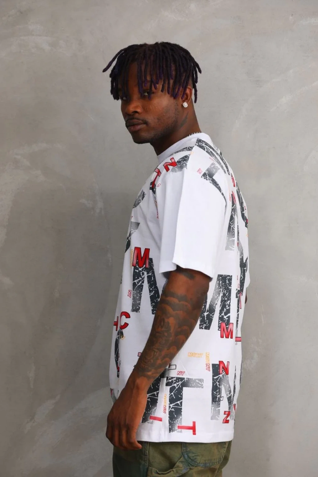 Unisex Baskılı Oversize T-Shirt - Beyaz