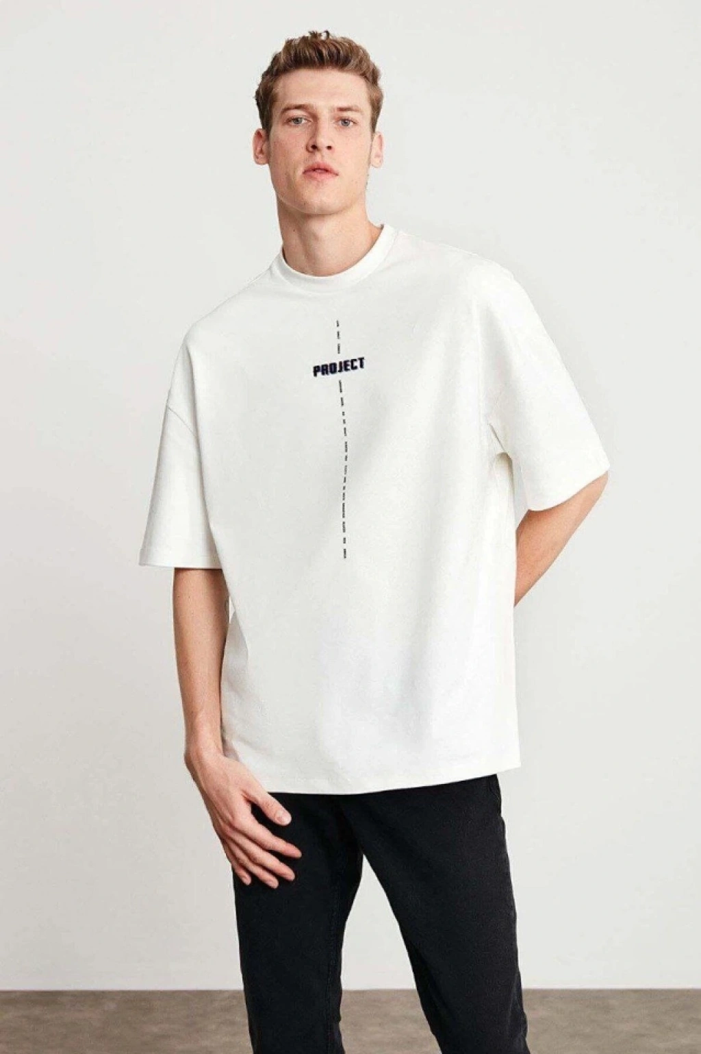 Unisex Baskılı Oversize T-Shirt - Beyaz