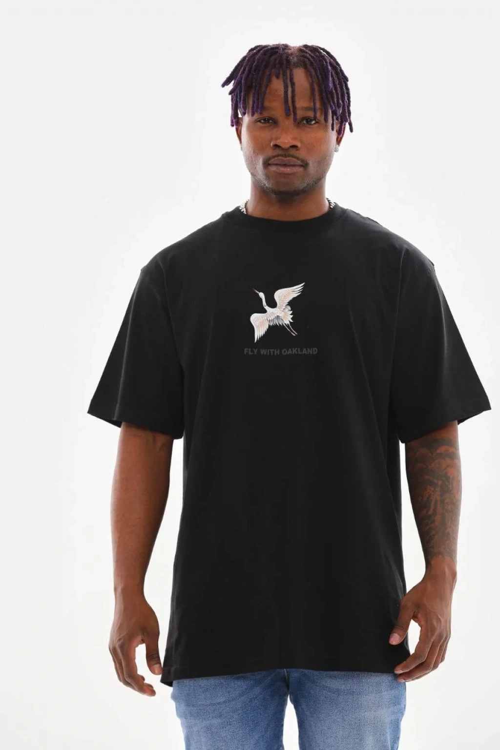 Unisex Baskılı Oversize T-Shirt - Siyah