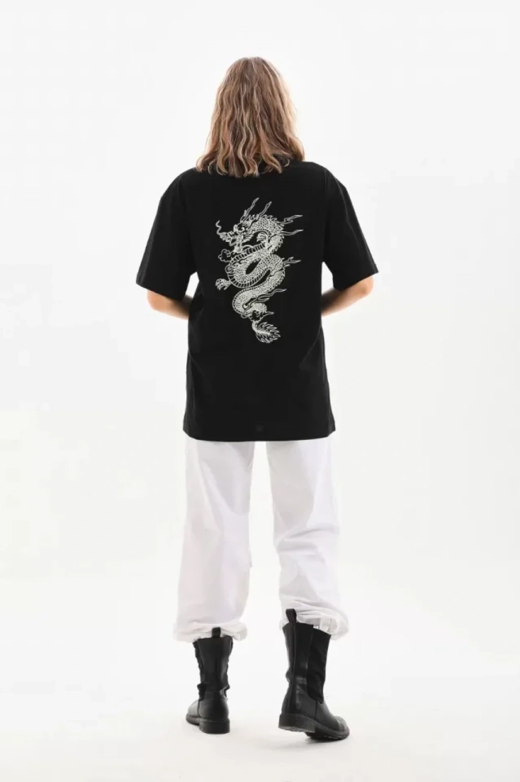 Unisex Baskılı Oversize T-Shirt - Siyah