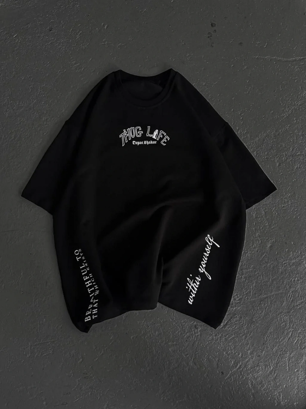 Unisex Baskılı Oversize T-Shirt - Siyah
