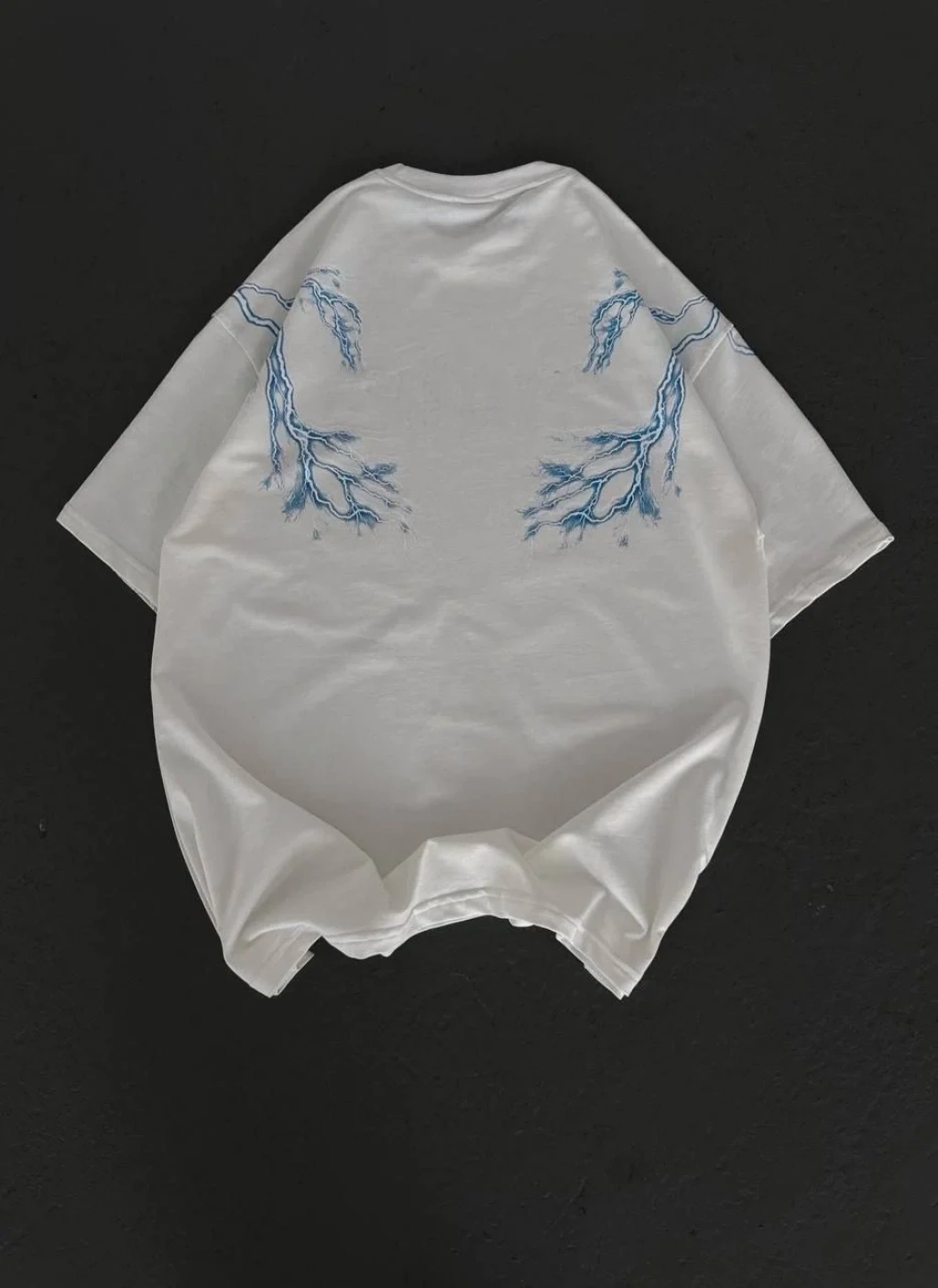 Unisex Bisiklet Yaka Baskılı Oversize T-Shirt - Beyaz