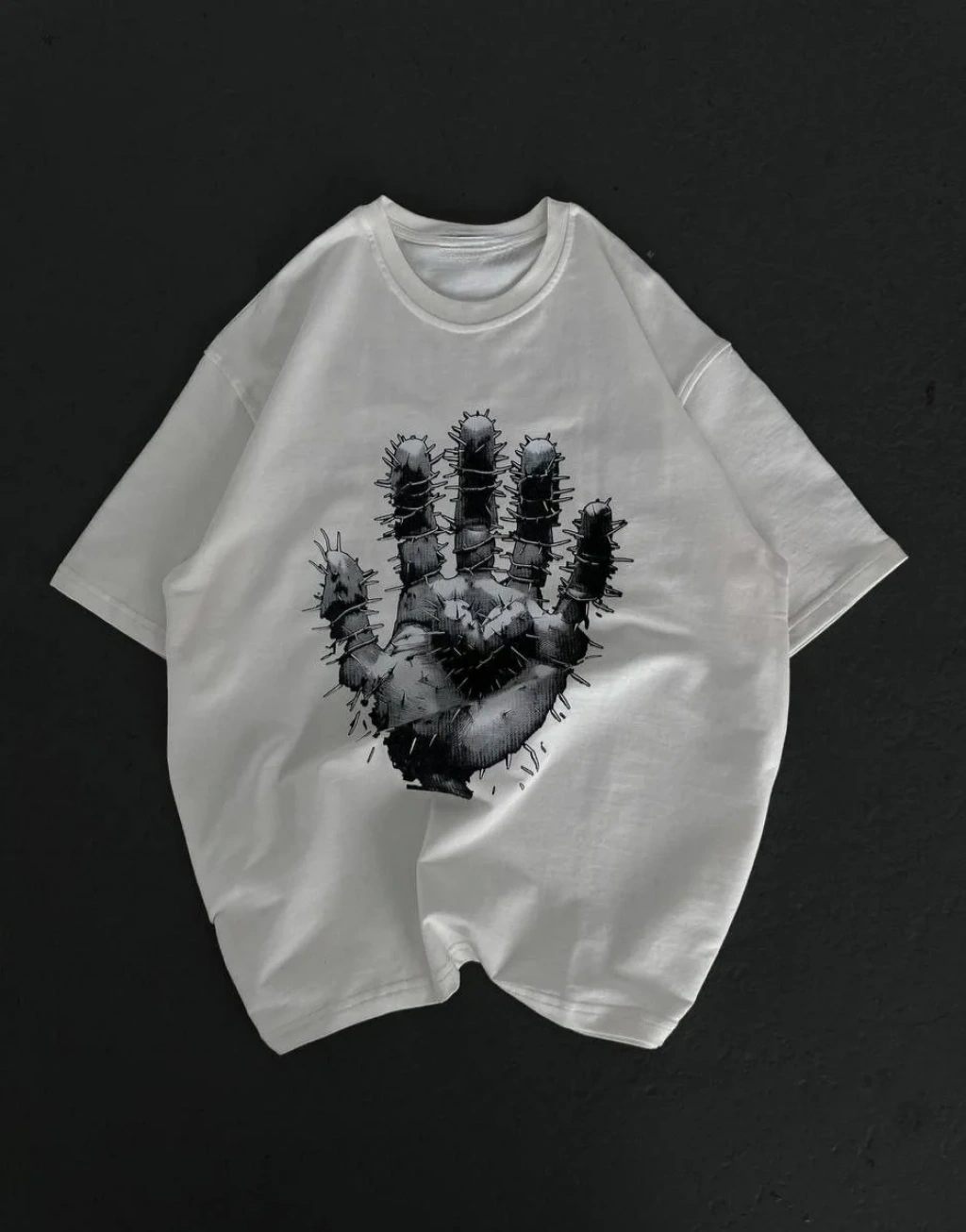 Unisex Bisiklet Yaka Baskılı Oversize T-Shirt - Beyaz