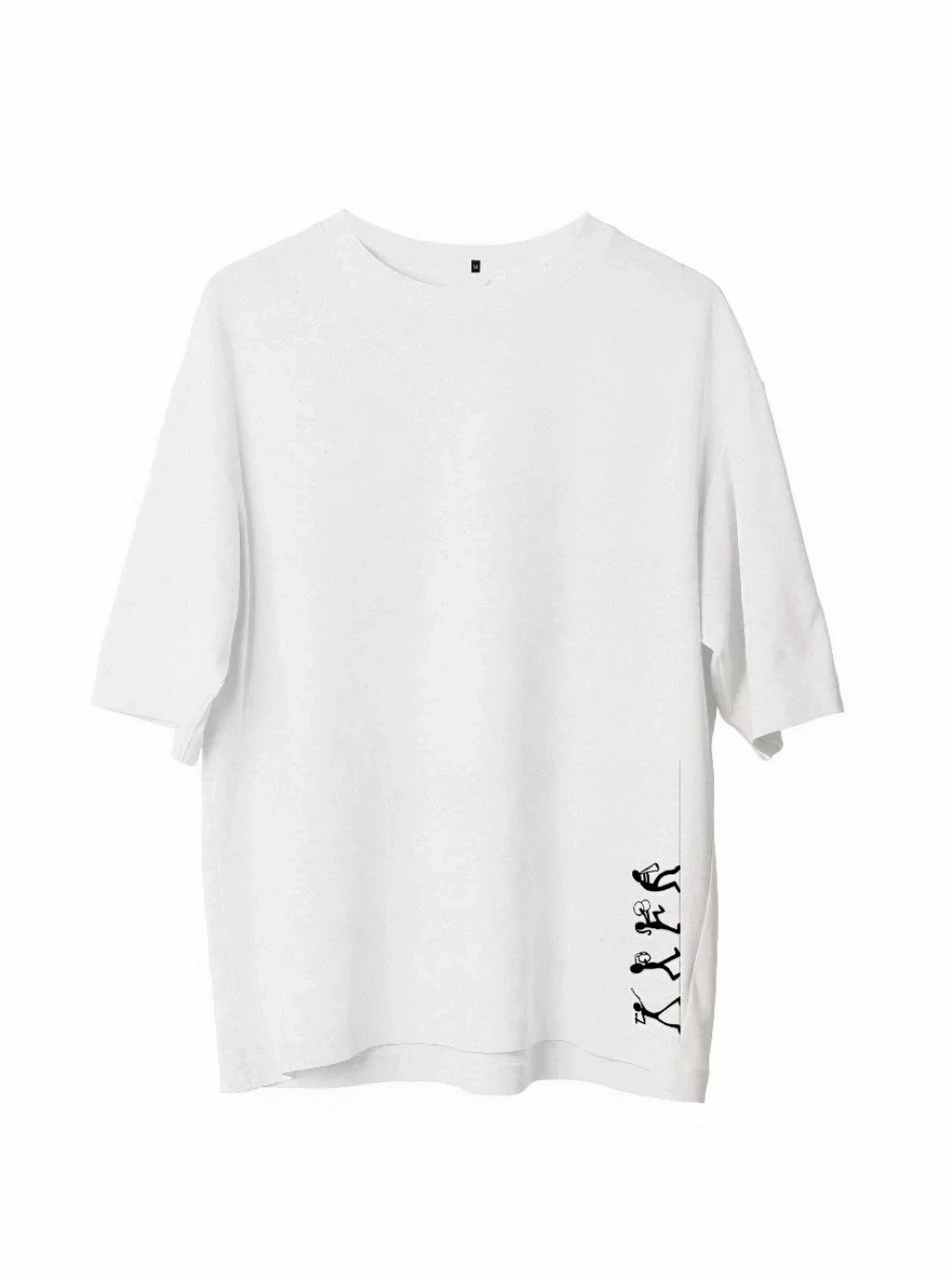 Unisex Bisiklet Yaka Baskılı Oversize T-Shirt - Beyaz