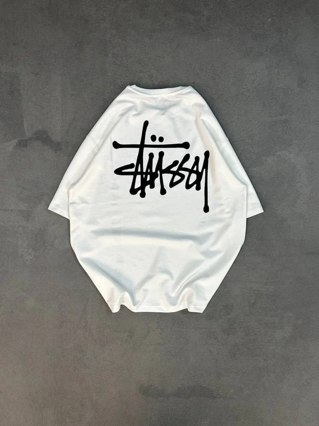 Unisex Bisiklet Yaka Baskılı Oversize T-Shirt - Beyaz