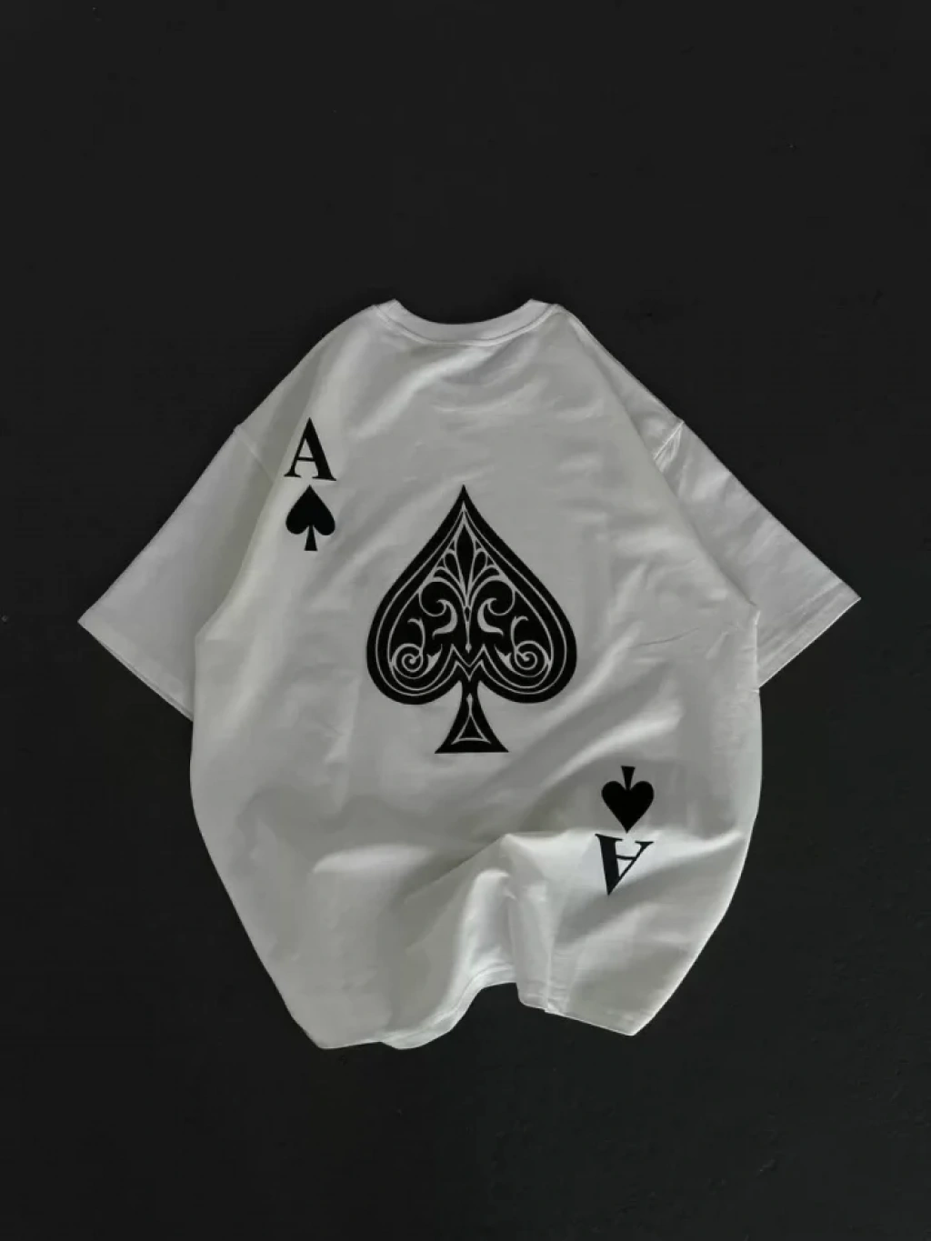 Unisex Bisiklet Yaka Baskılı Oversize T-Shirt - Beyaz