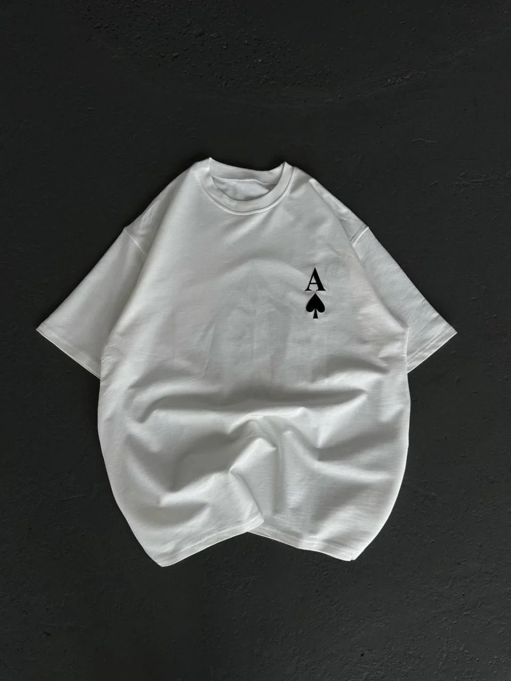 Unisex Bisiklet Yaka Baskılı Oversize T-Shirt - Beyaz