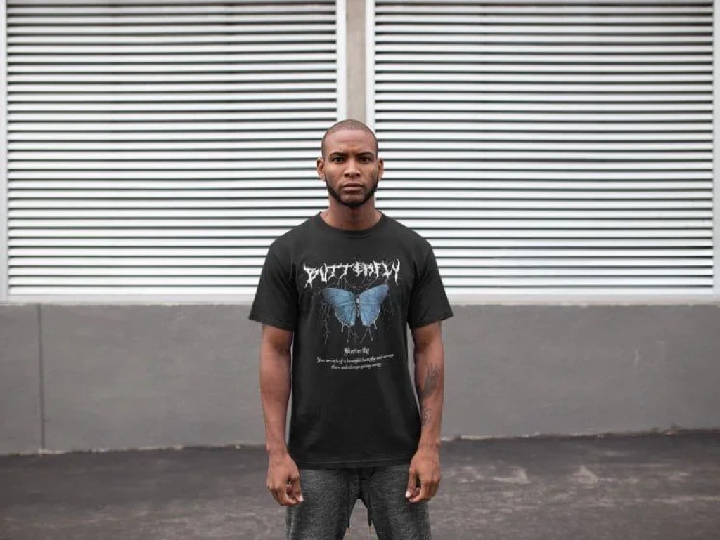 Unisex Bisiklet Yaka Baskılı Oversize T-Shirt - Siyah