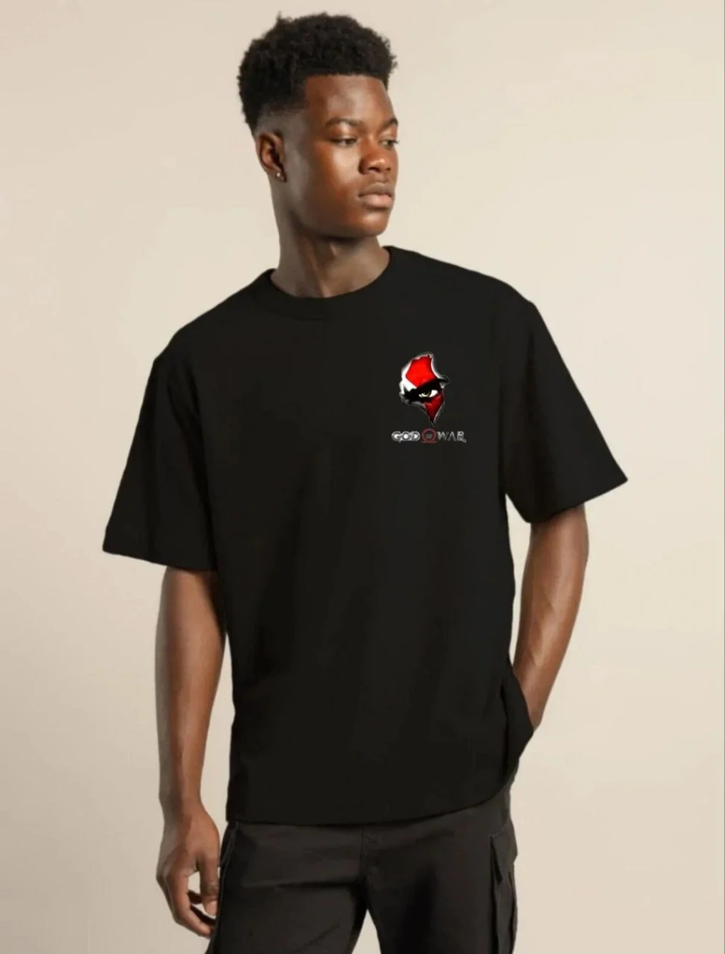 Unisex Bisiklet Yaka Baskılı Oversize T-Shirt - Siyah