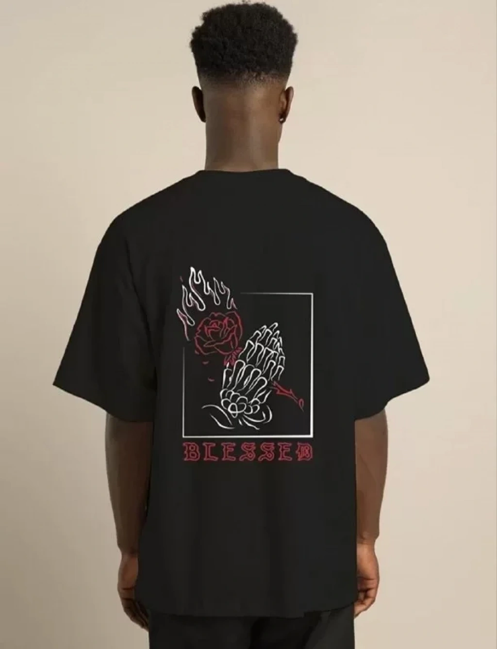 Unisex Bisiklet Yaka Oversize Baskılı T-Shirt - Siyah
