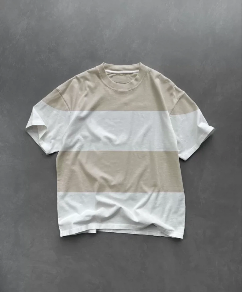 Unisex Bisiklet Yaka Parçalı T-Shirt - Bej