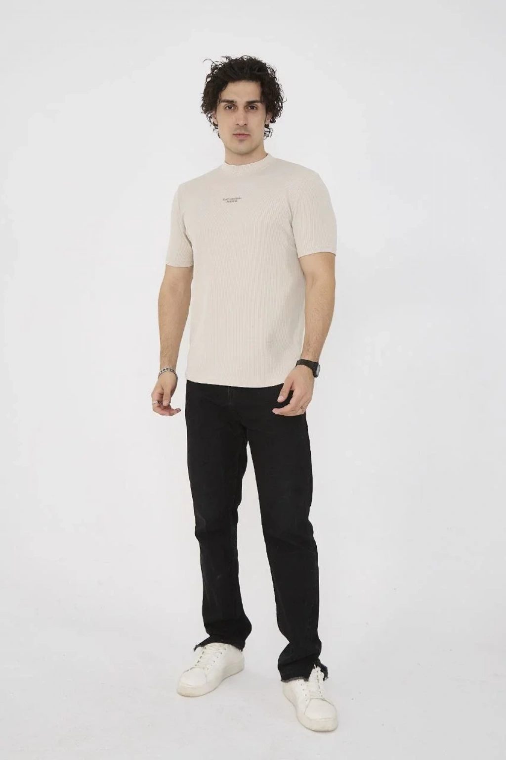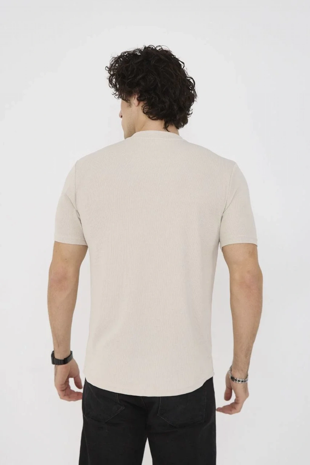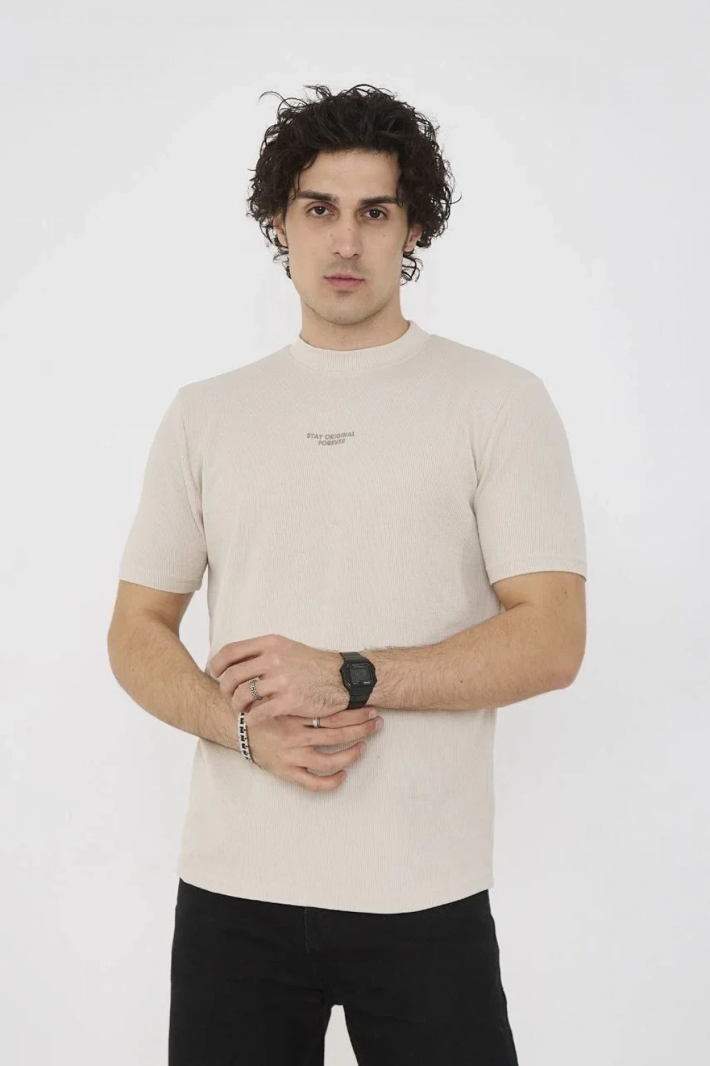 Unisex Bisiklet Yaka Slim fit T-Shirt- Bej