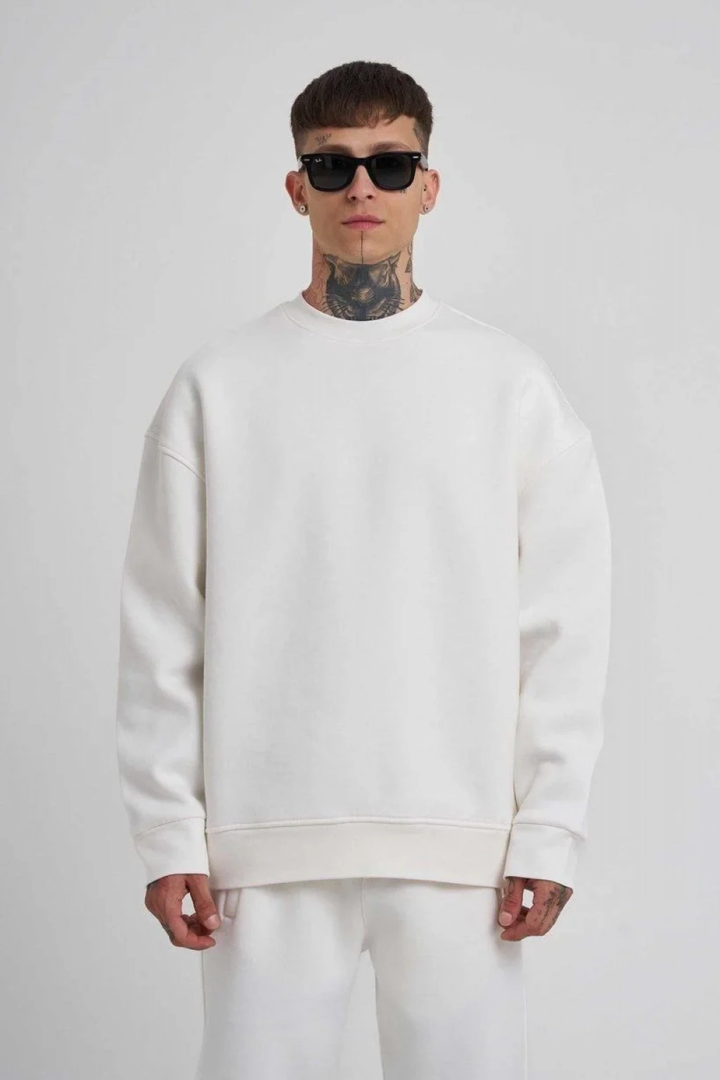 Unisex Biskilet Yaka Üç İplik SweatShirt - Beyaz