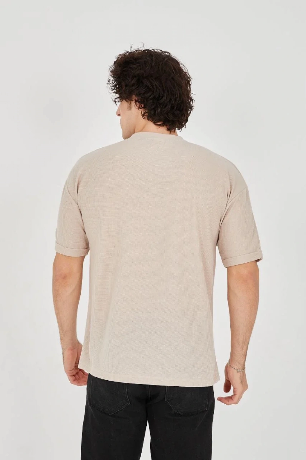Unisex Jakar Kumaş Rahat Kol T-Shirt - Bej