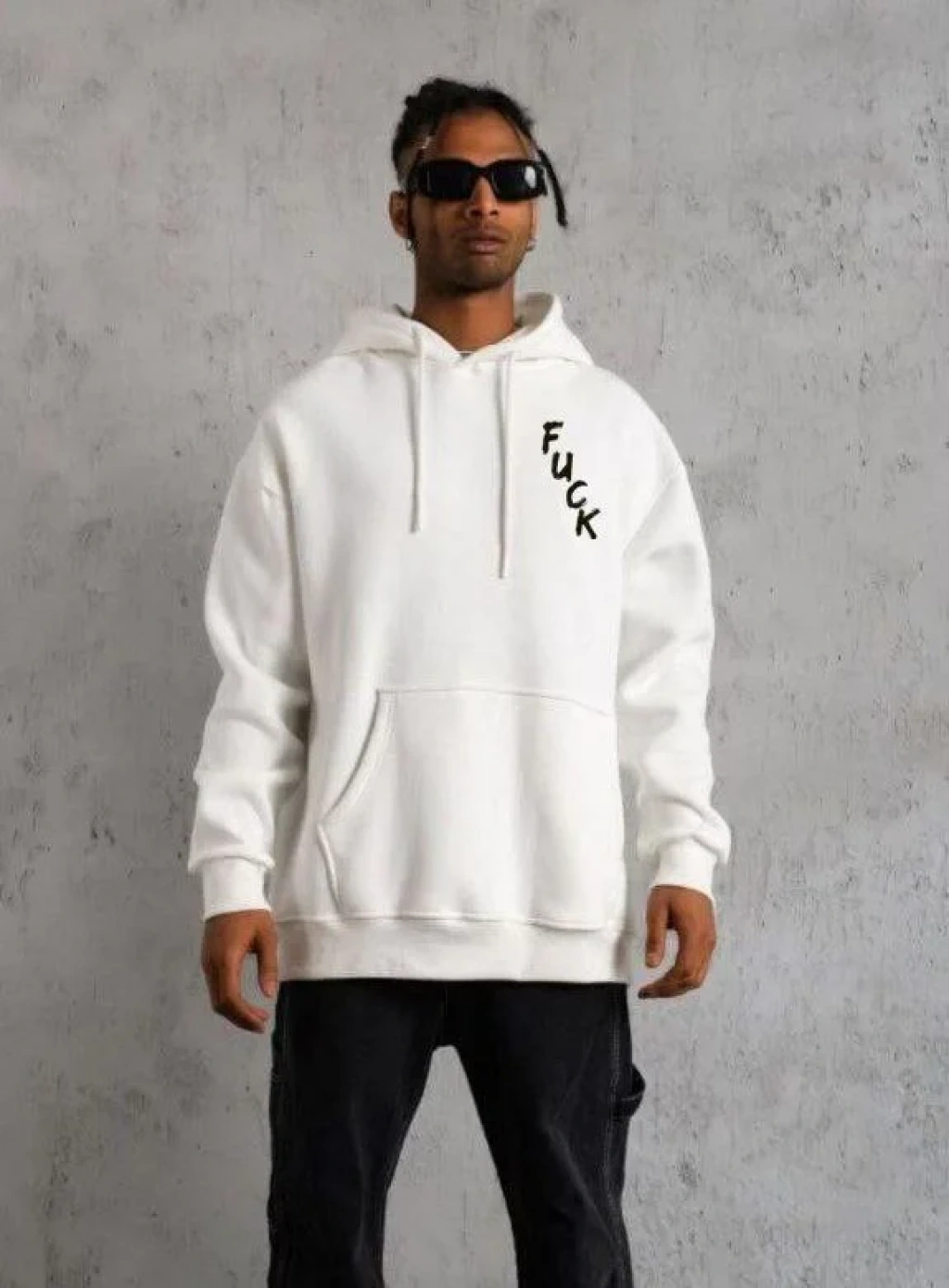 Unisex Kapşonlu Uzun Kol Baskılı Sweetshirt - Beyaz