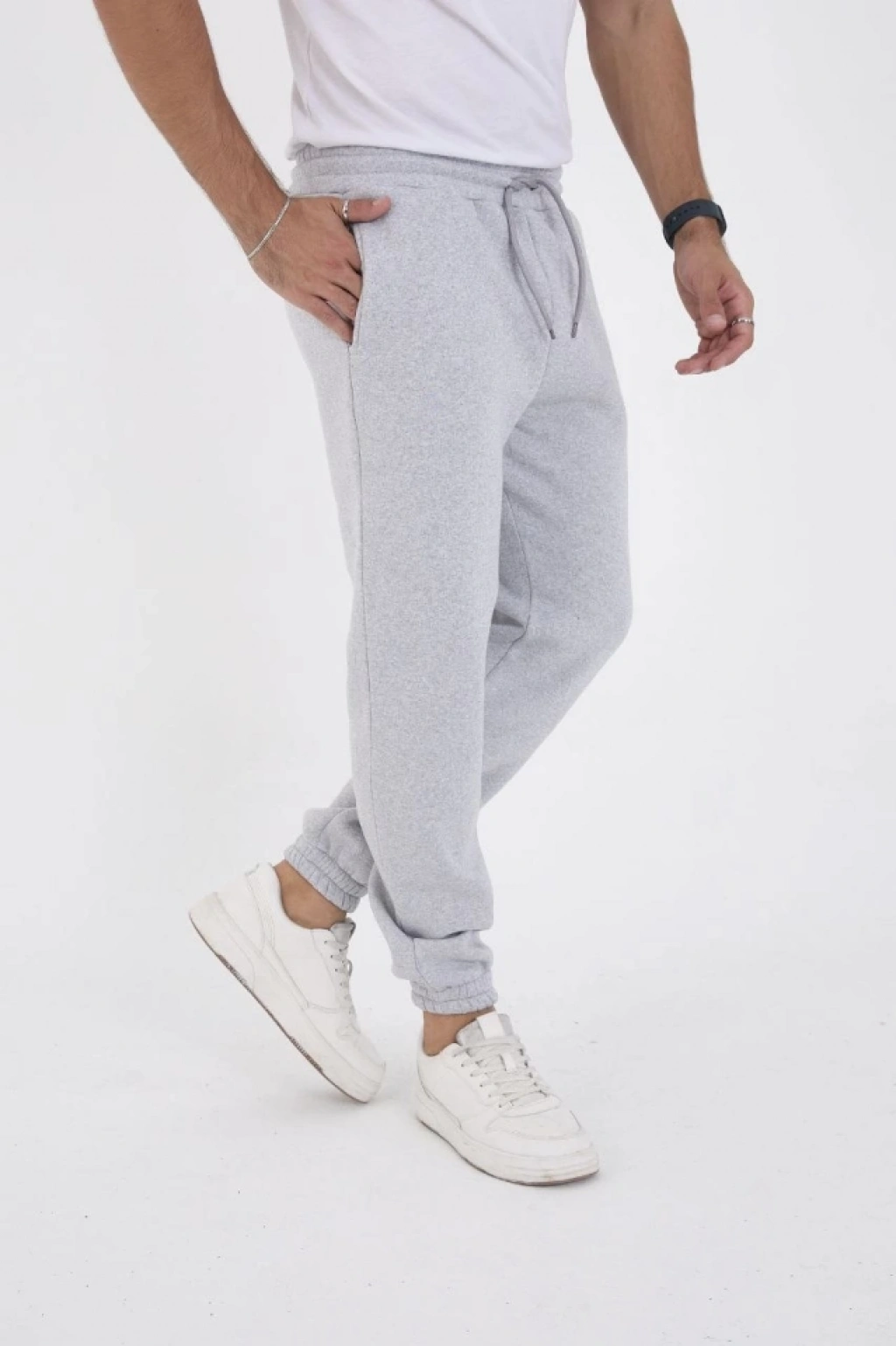 Unisex Kışlık Üç İplik Lastikli Eşofman Pantolon - Gri