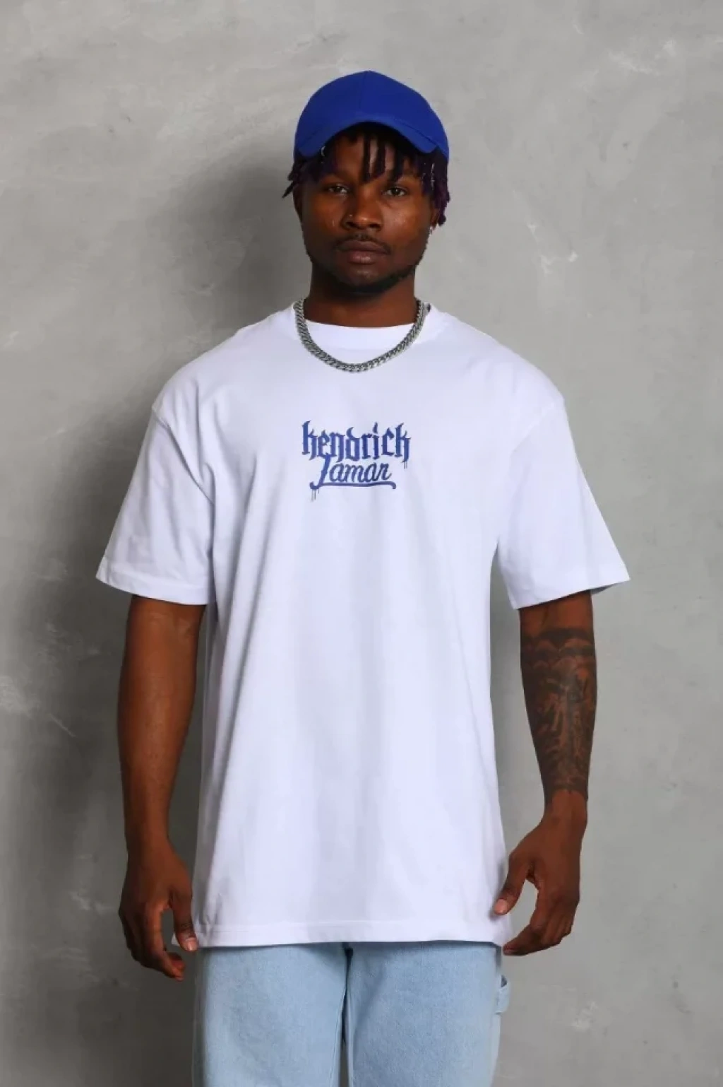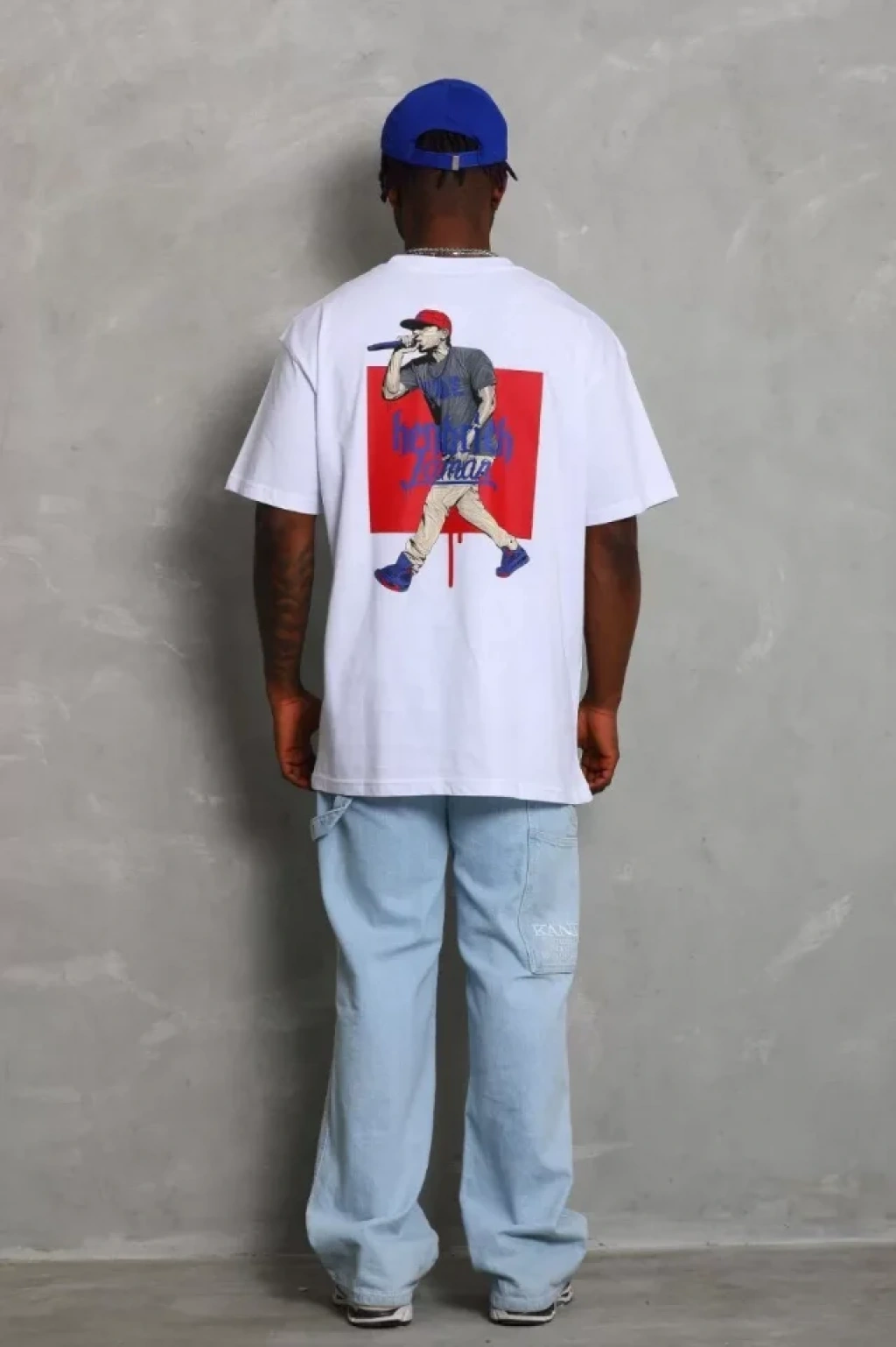 Unisex Oversize Baskılı Bisiklet Yaka T-Shirt - Beyaz