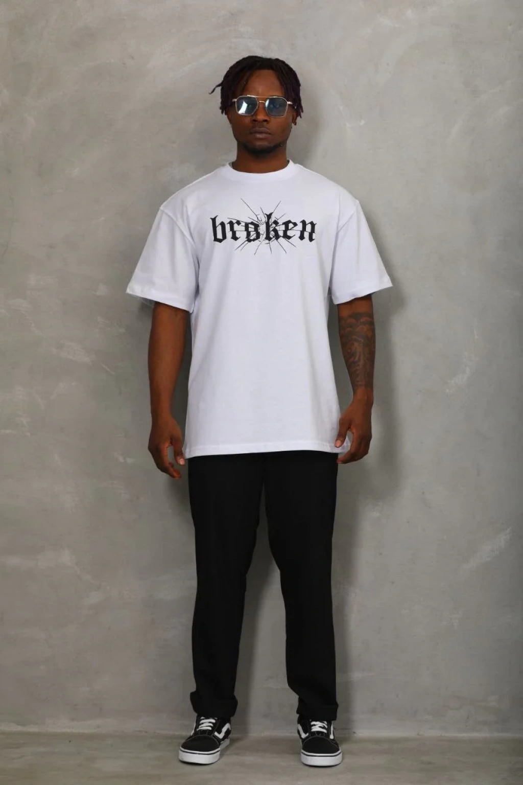 Unisex Oversize Baskılı Bisiklet Yaka T-Shirt - Beyaz