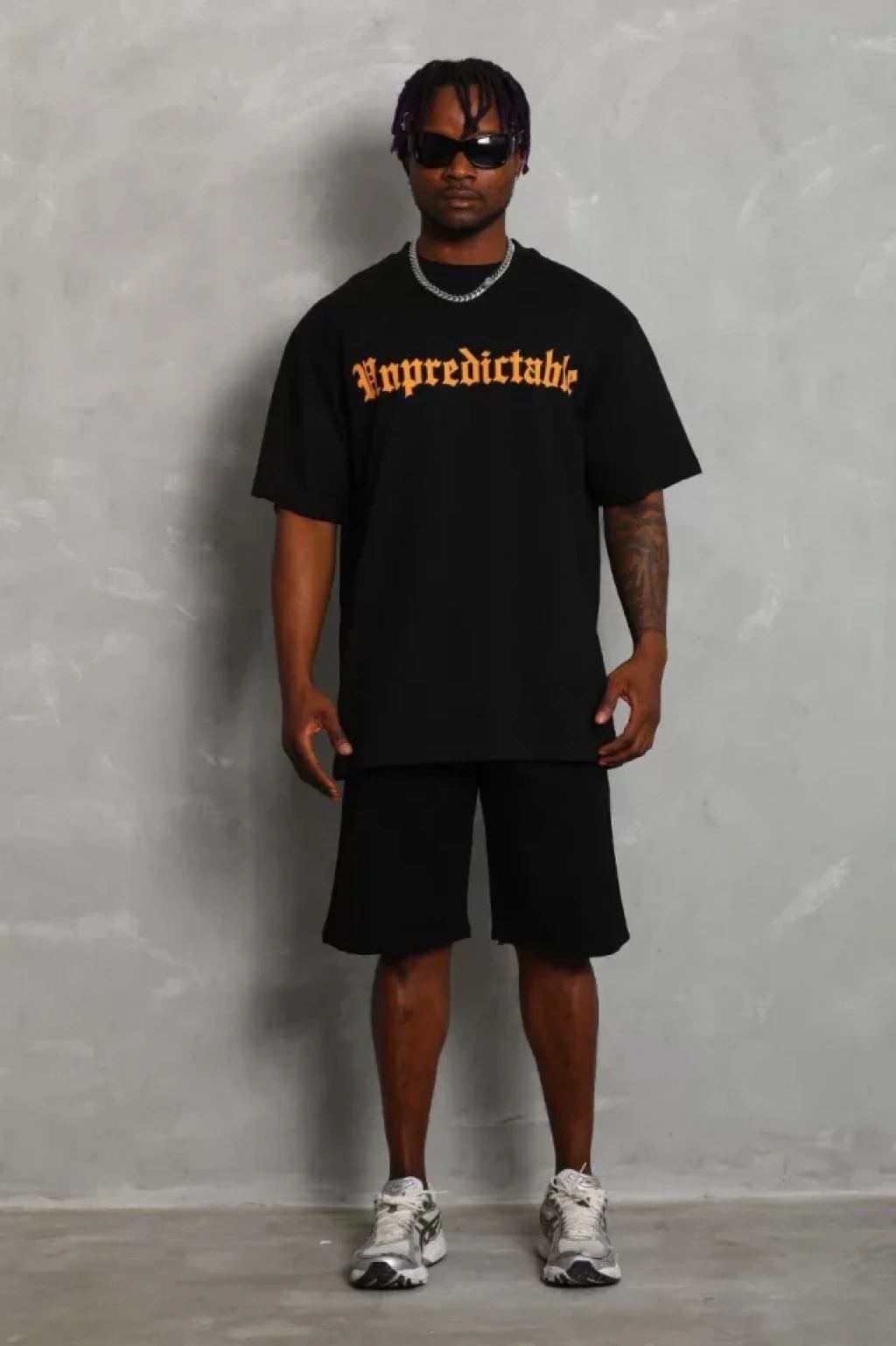 Unisex Oversize Baskılı Bisiklet Yaka T-Shirt - Siyah