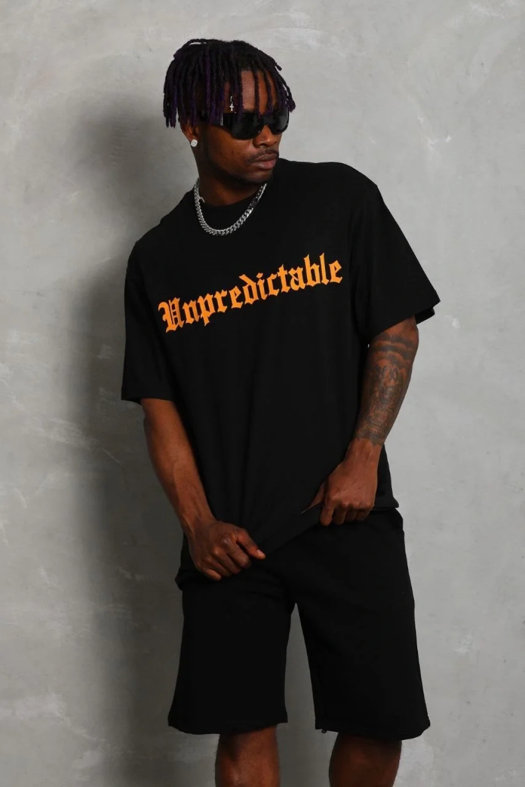 Unisex Oversize Baskılı Bisiklet Yaka T-Shirt - Siyah