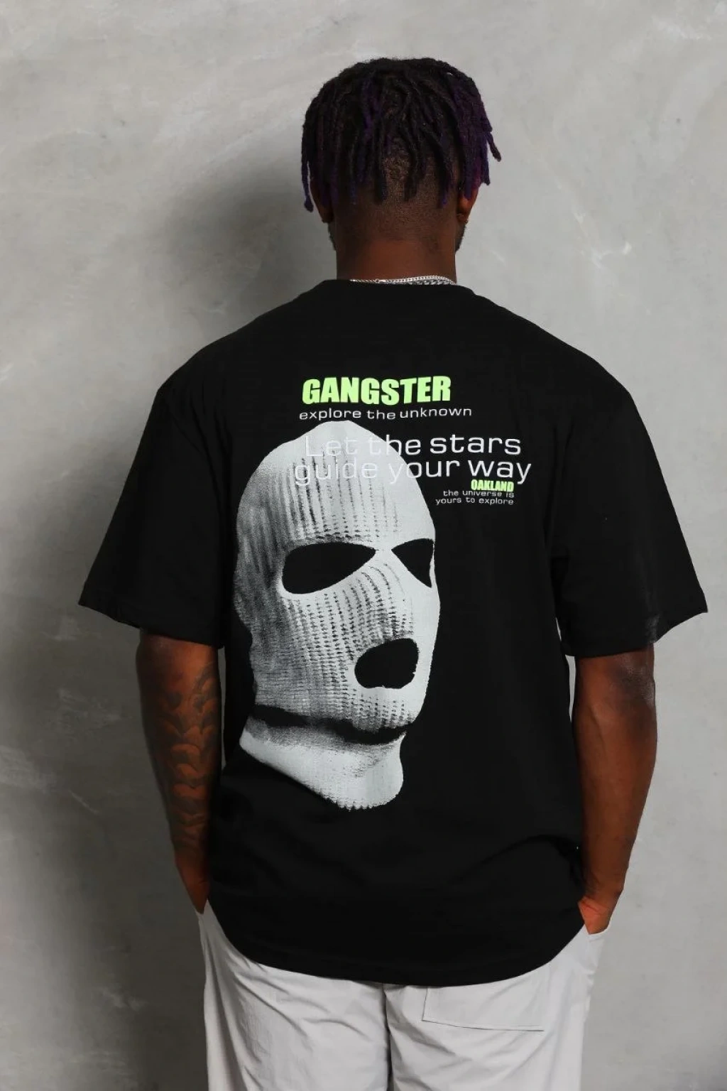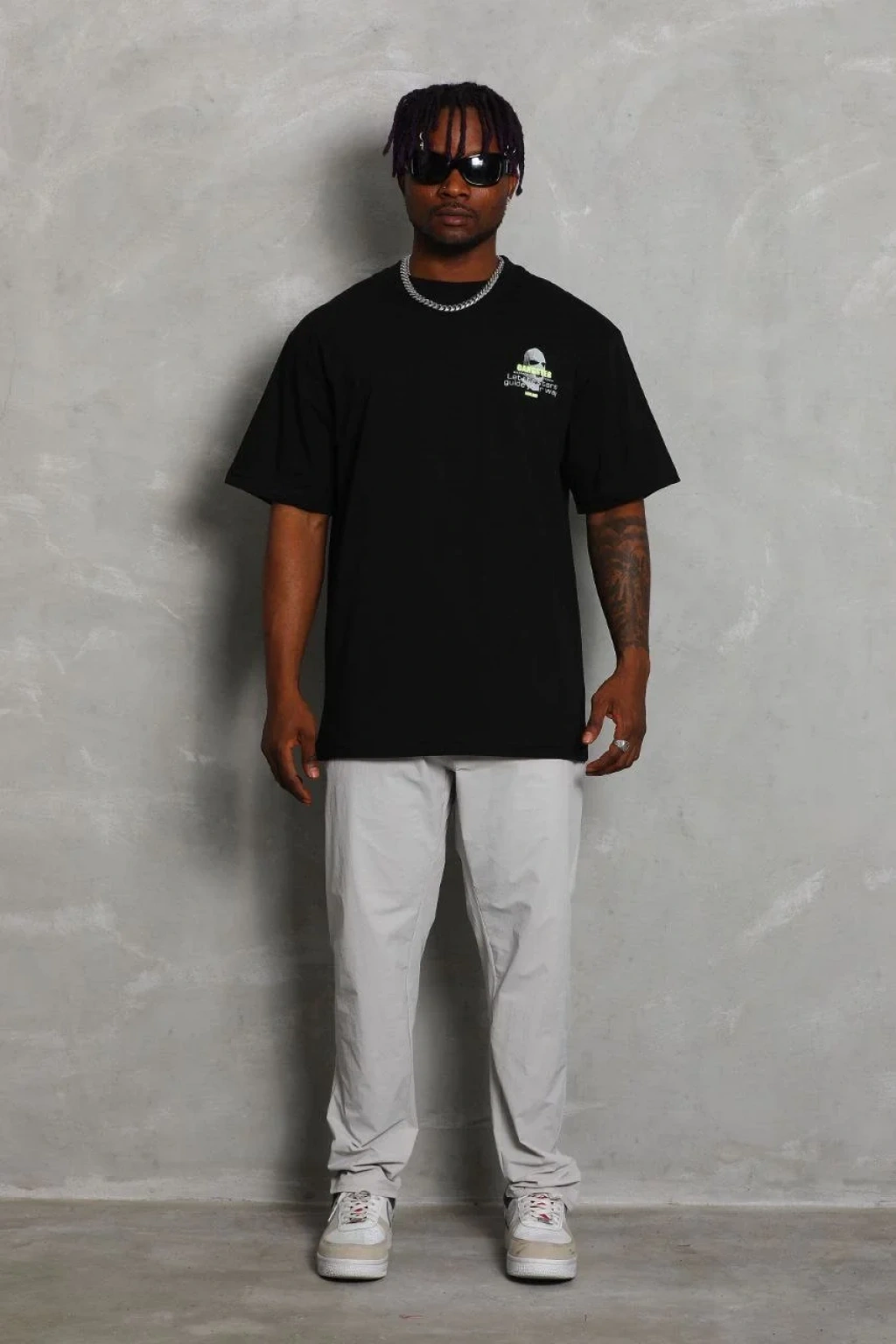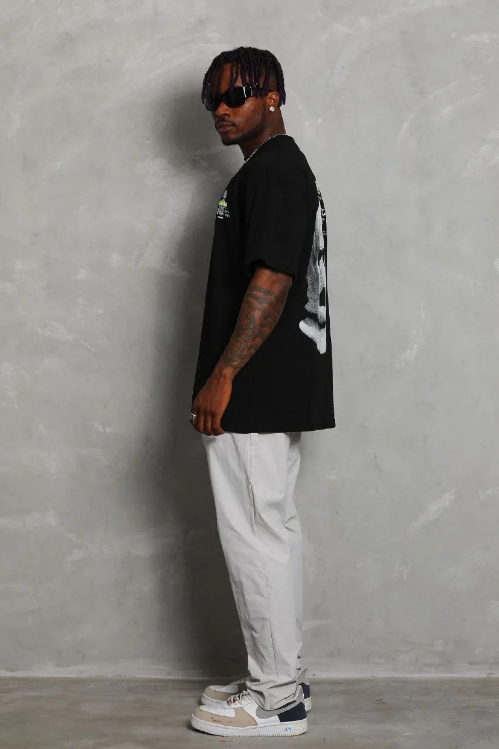 Unisex Oversize Baskılı Bisiklet Yaka T-Shirt - Siyah