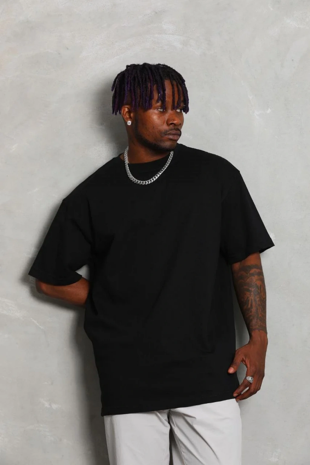 Unisex Oversize Düz Bisiklet Yaka T-Shirt - Siyah