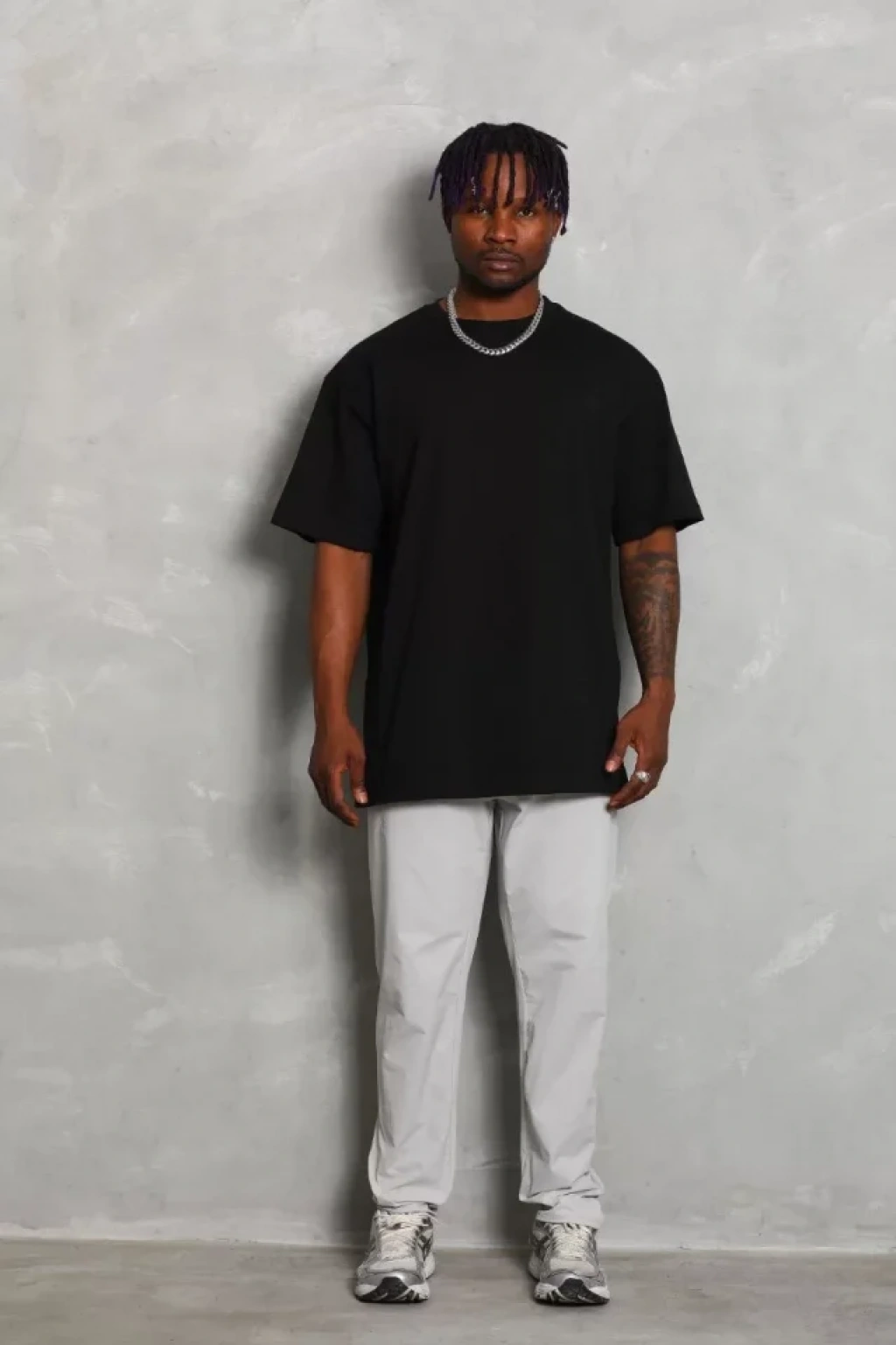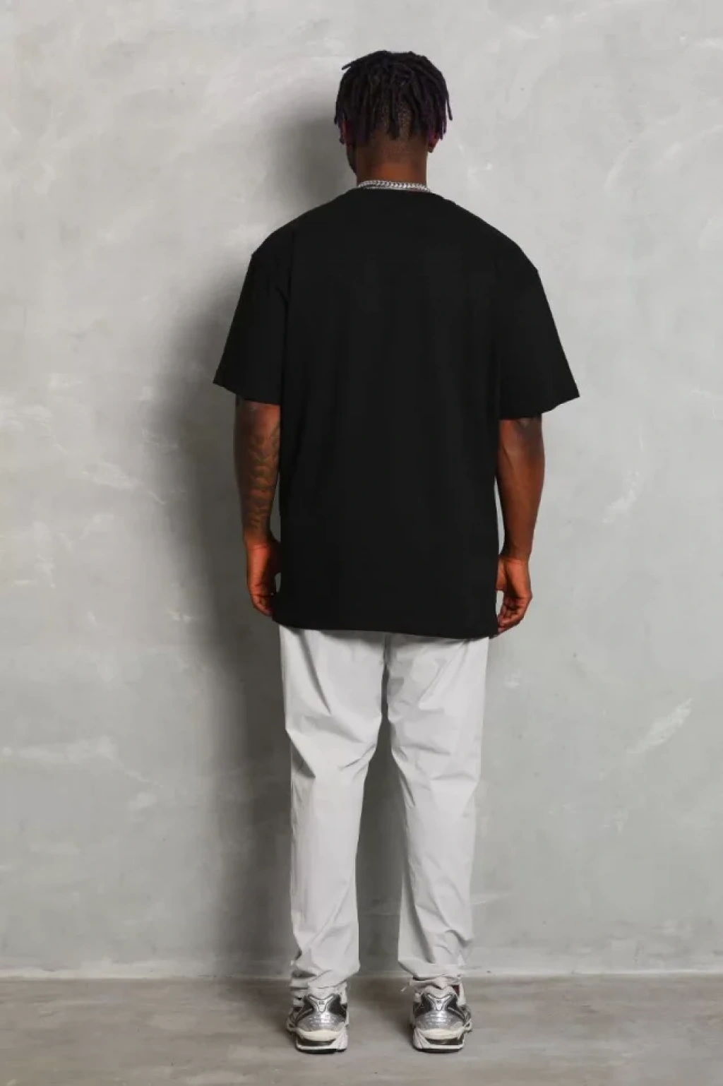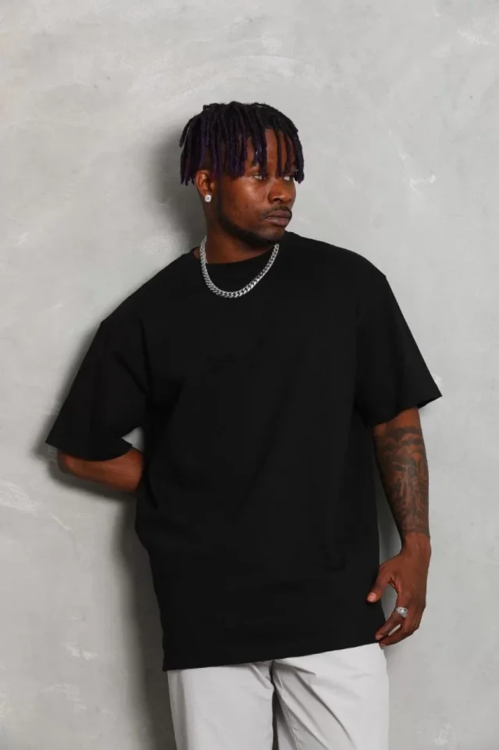 Unisex Oversize Düz Bisiklet Yaka T-Shirt - Siyah
