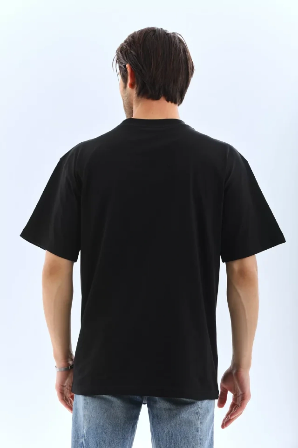 Unisex Oversize Düz Bisiklet Yaka T-Shirt - Siyah