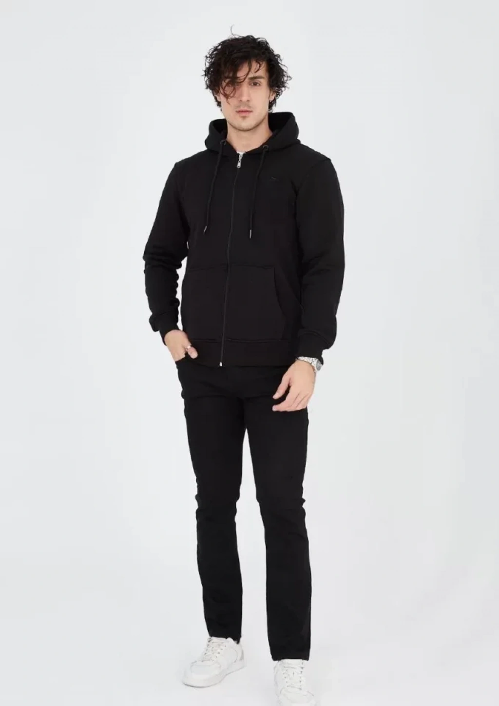 Unisex Tam Fermuarlı Kapşonlu SweatShirt - Siyah