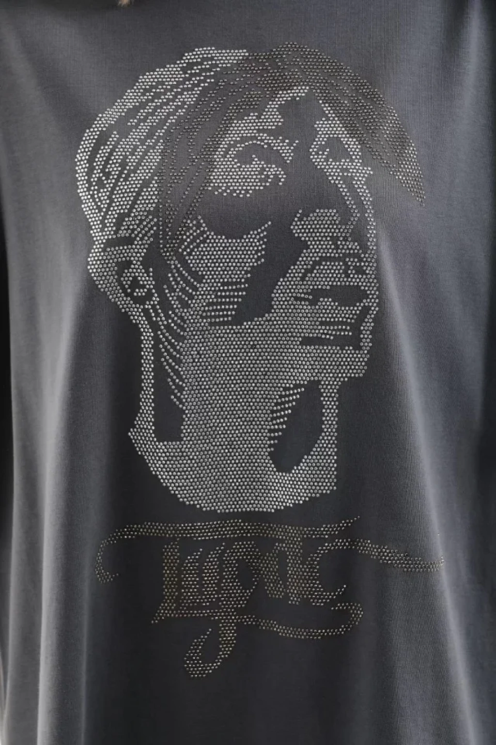 Unisex Taş Desenli Oversize T-Shirt - Füme