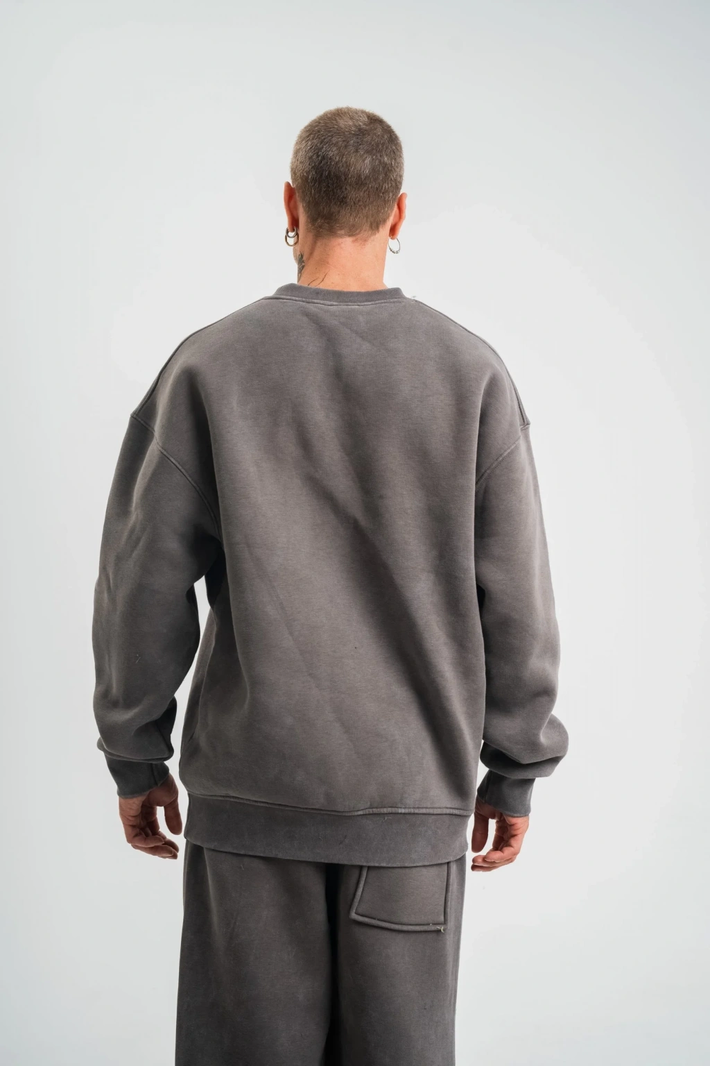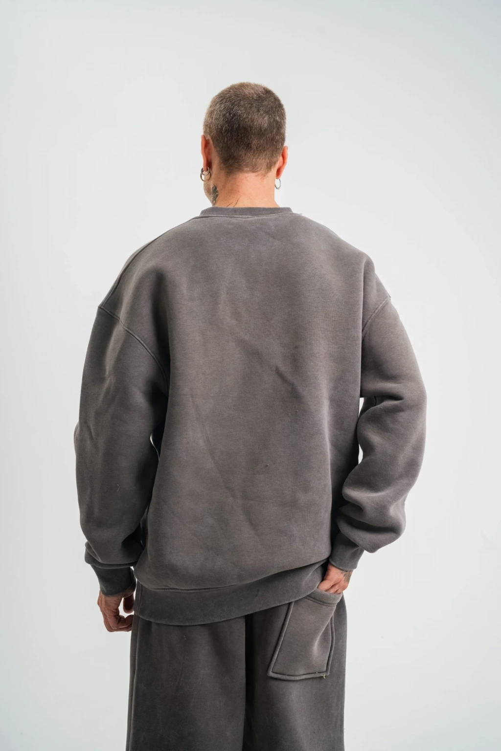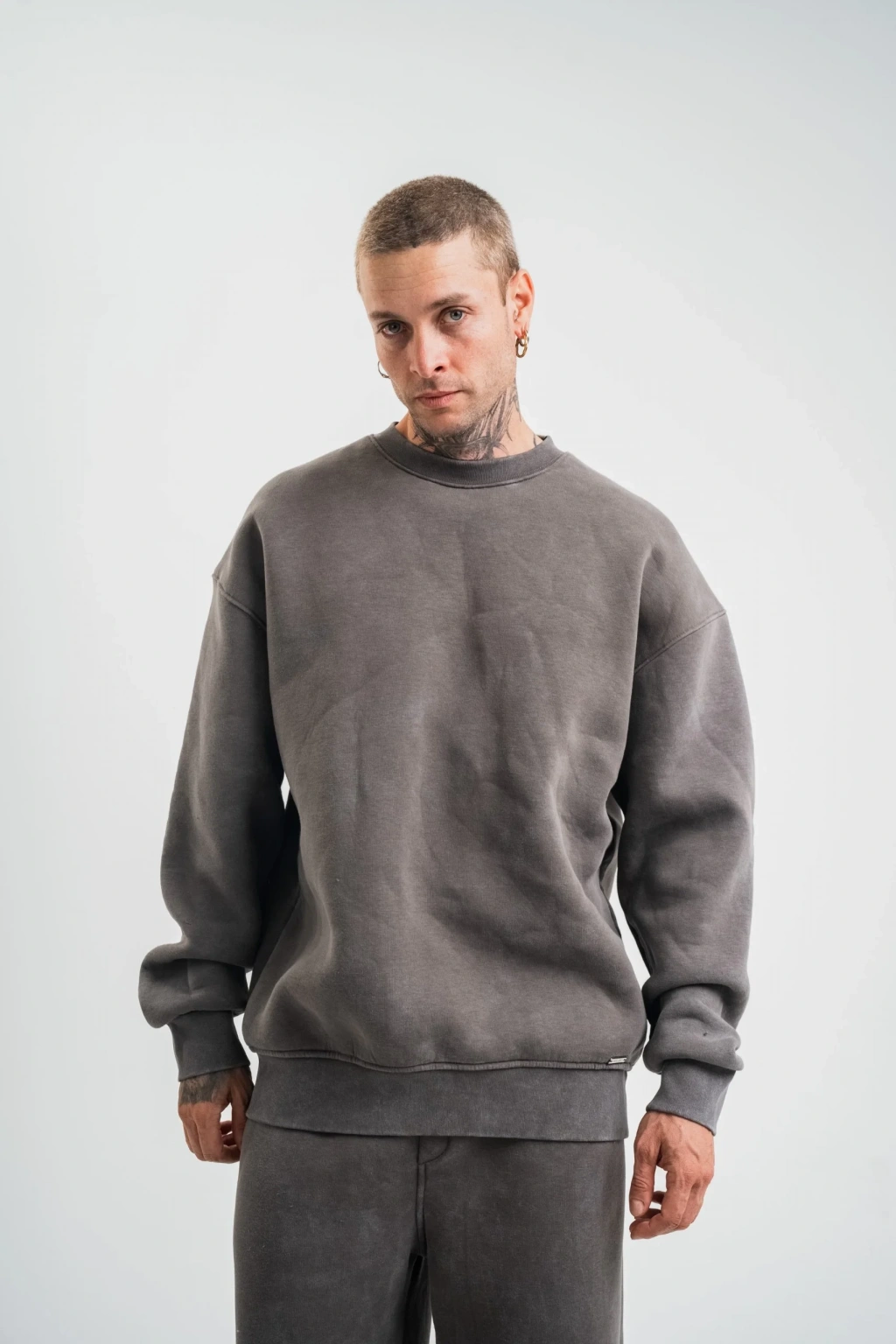 Unisex Uzun Kol Bisiklet Yaka Yıkamalı SweatShirt - Füme