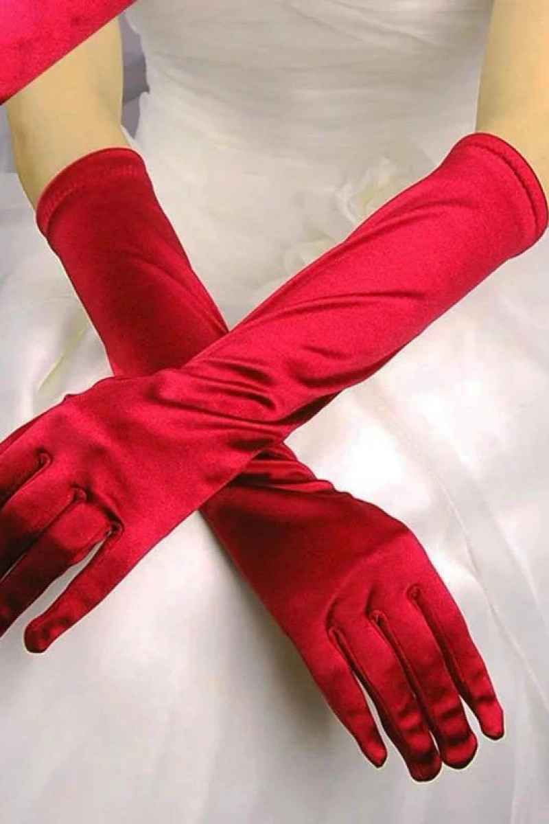Uzun Boy Ekstra Parlak Saten Eldiven Kırmızı Renk