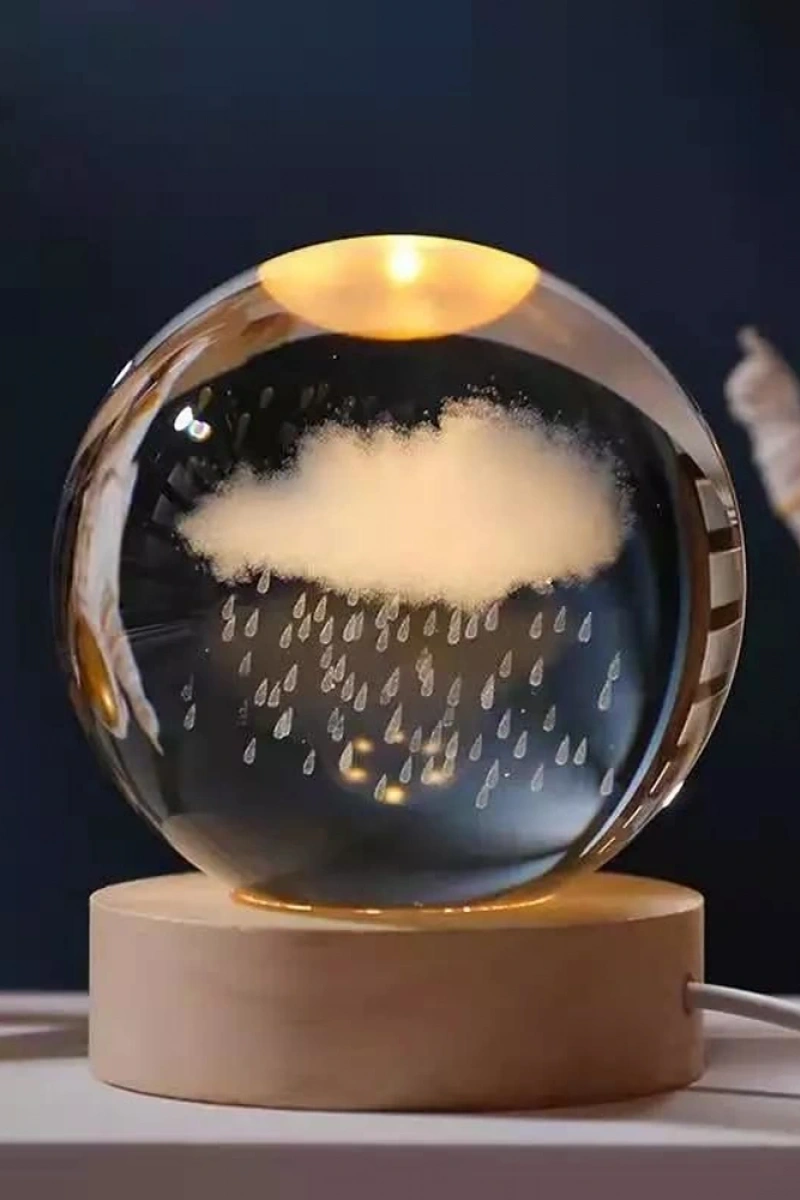 Yağmur Bulutu Tasarımlı Işıklı Cam Küre